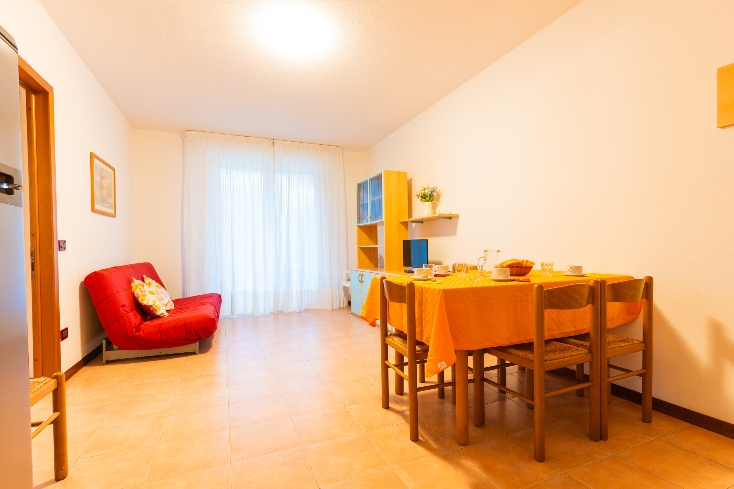 Gli appartamenti trilocali situati al piano terra dei residence del Villaggio Lido del Sole, dispongono di giardinetto e possono godere di vista ed esposizioni diverse.