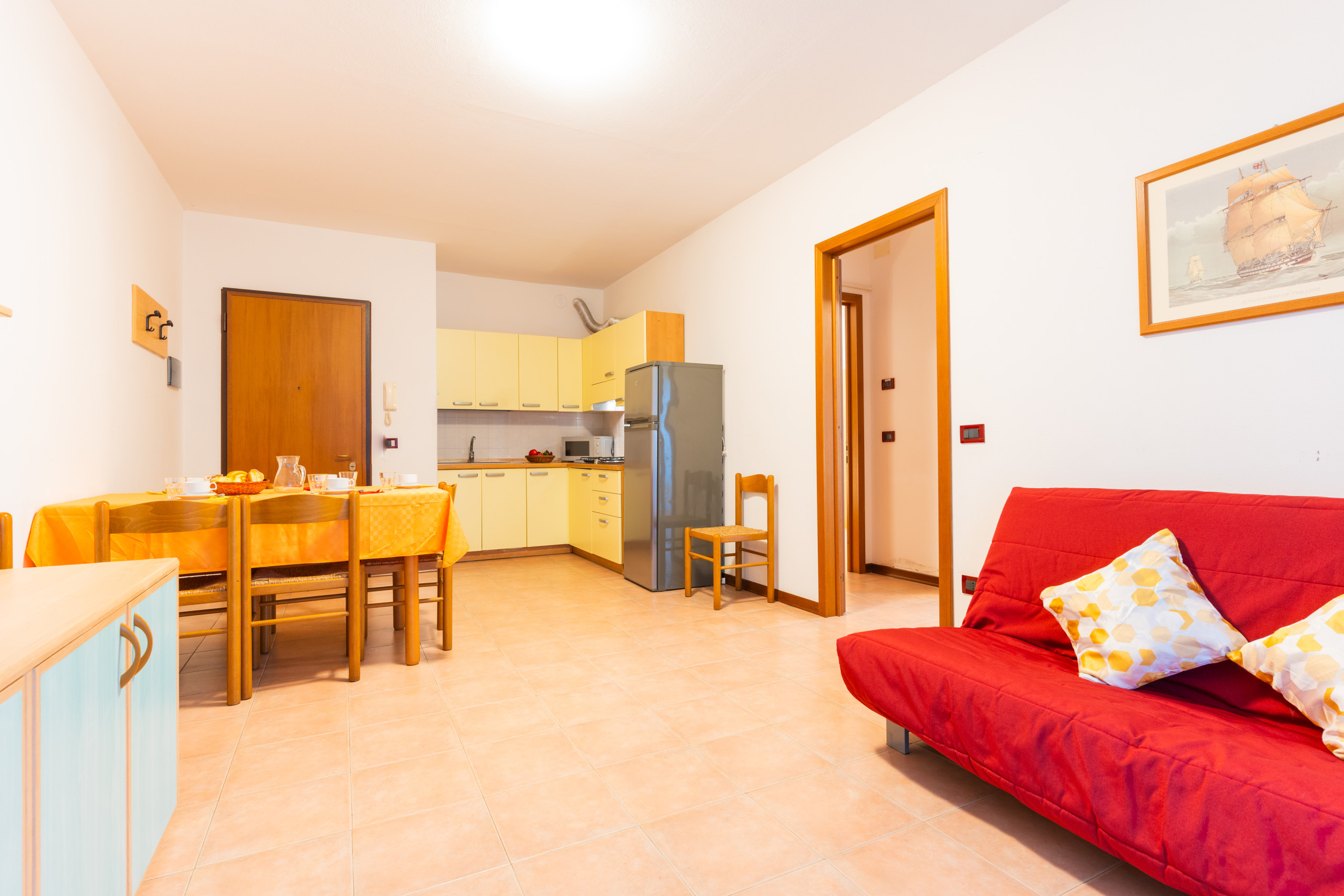 - un soggiorno accogliente con angolo cottura attrezzato e divano letto doppio,