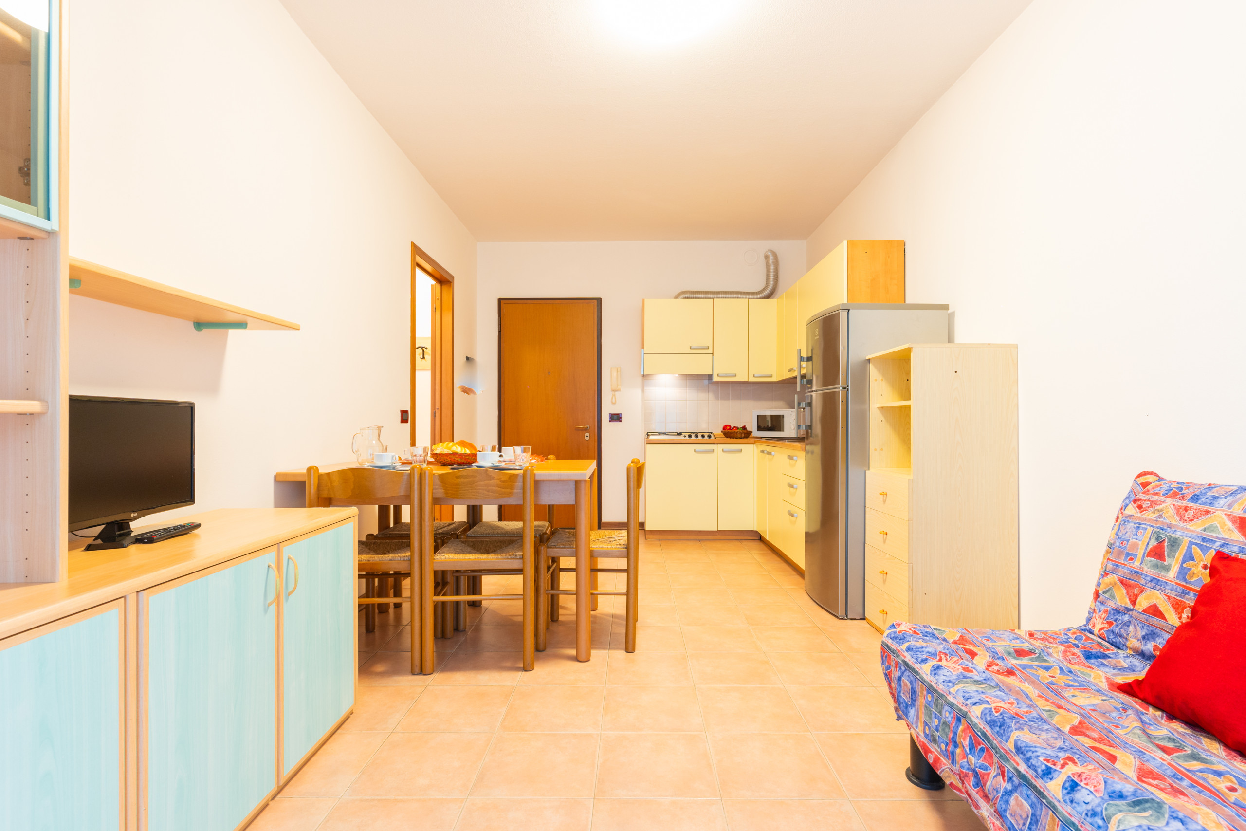 - un soggiorno con angolo cottura attrezzato e divano letto doppio, ideale per rilassarsi in compagnia;
