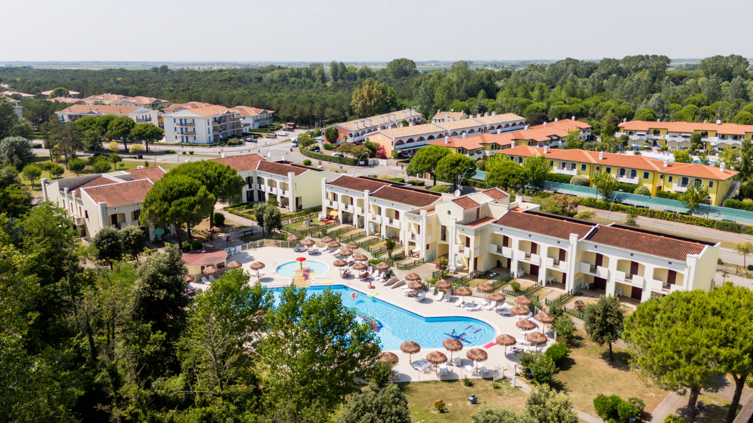 Il cuore del villaggio è il giardino centrale, dove i bambini possono divertirsi con i giochi dedicati e le famiglie rilassarsi nell’ampia piscina con Wi-Fi gratuito.
