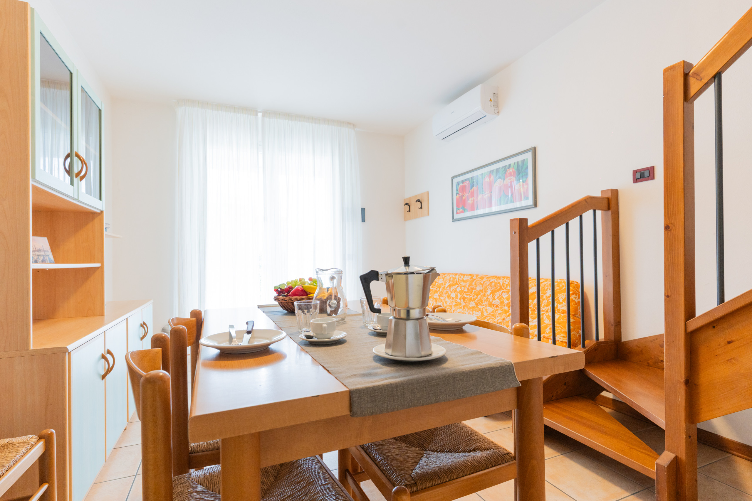- Piano terra: soggiorno con angolo cottura attrezzato e divano letto doppio;