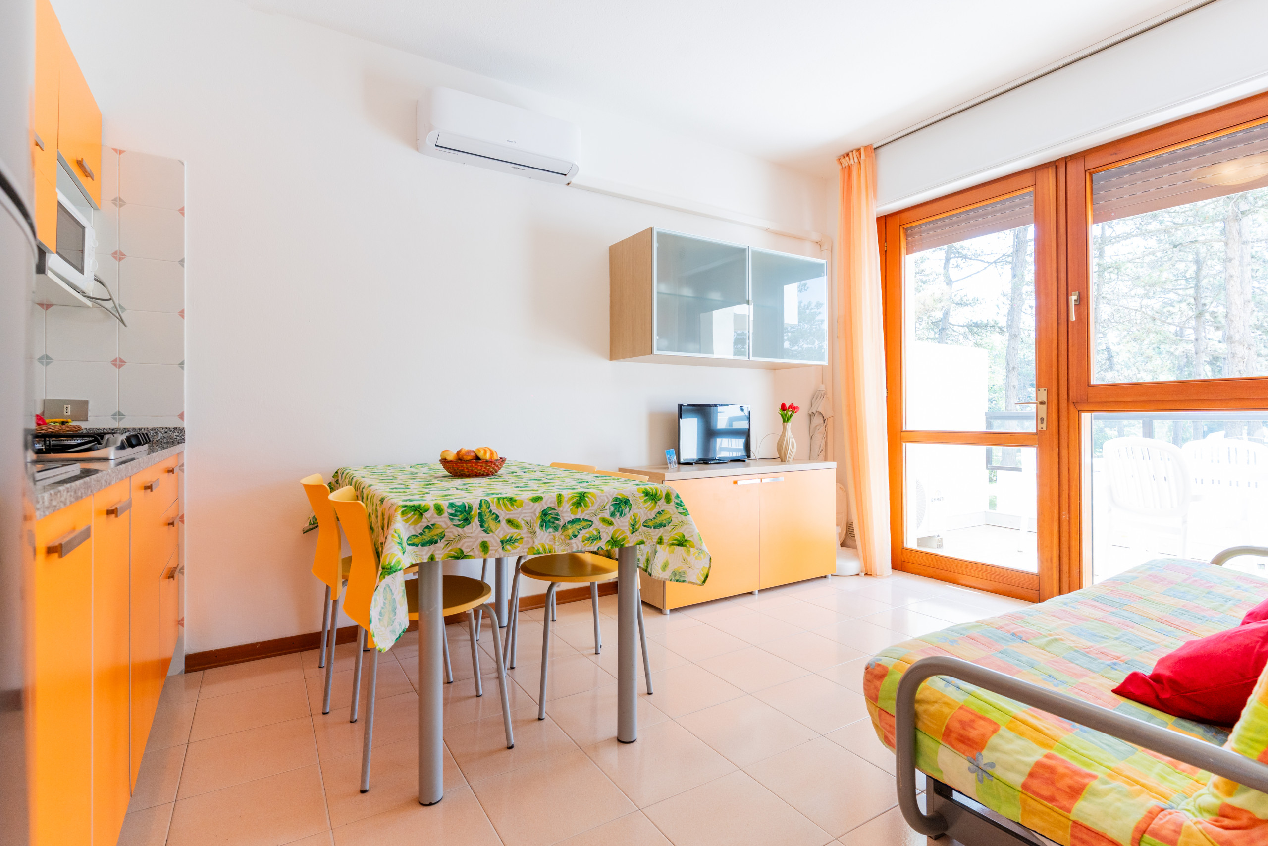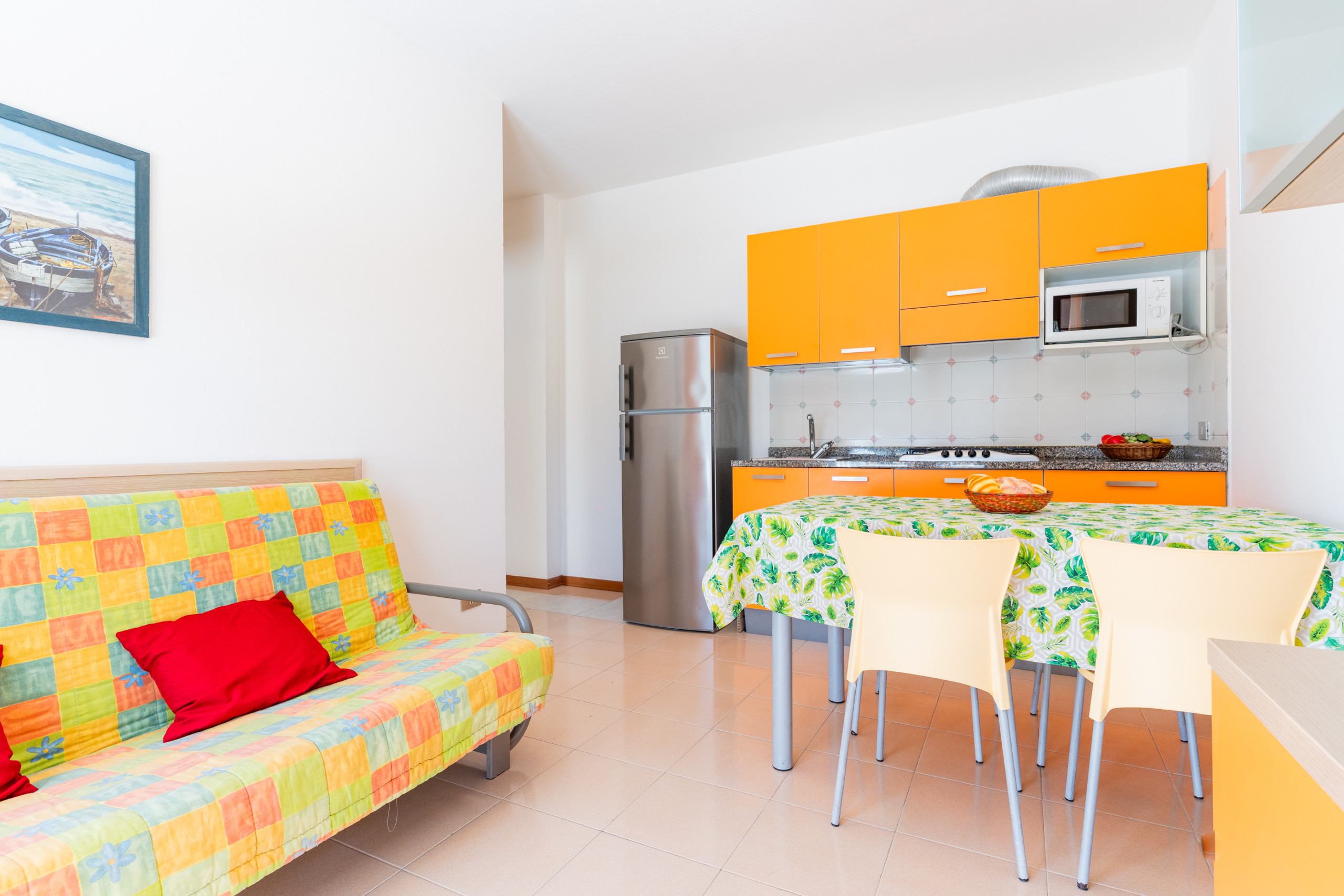 - Soggiorno con angolo cottura attrezzato e divano letto doppio