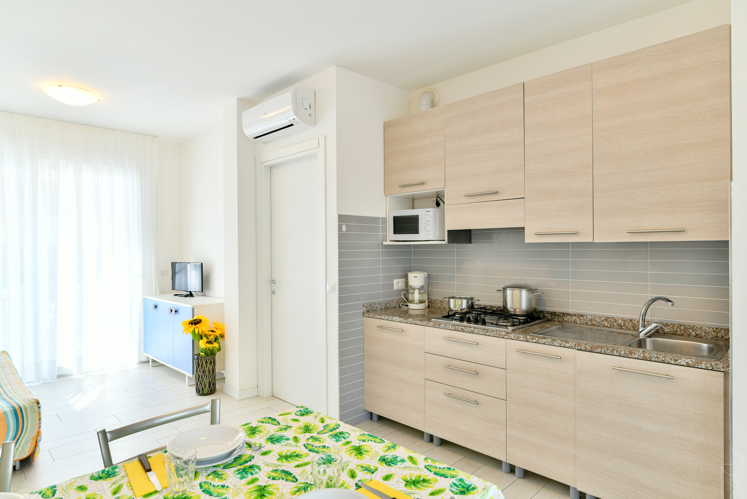 - un soggiorno accogliente con angolo cottura attrezzato e divano letto doppio,