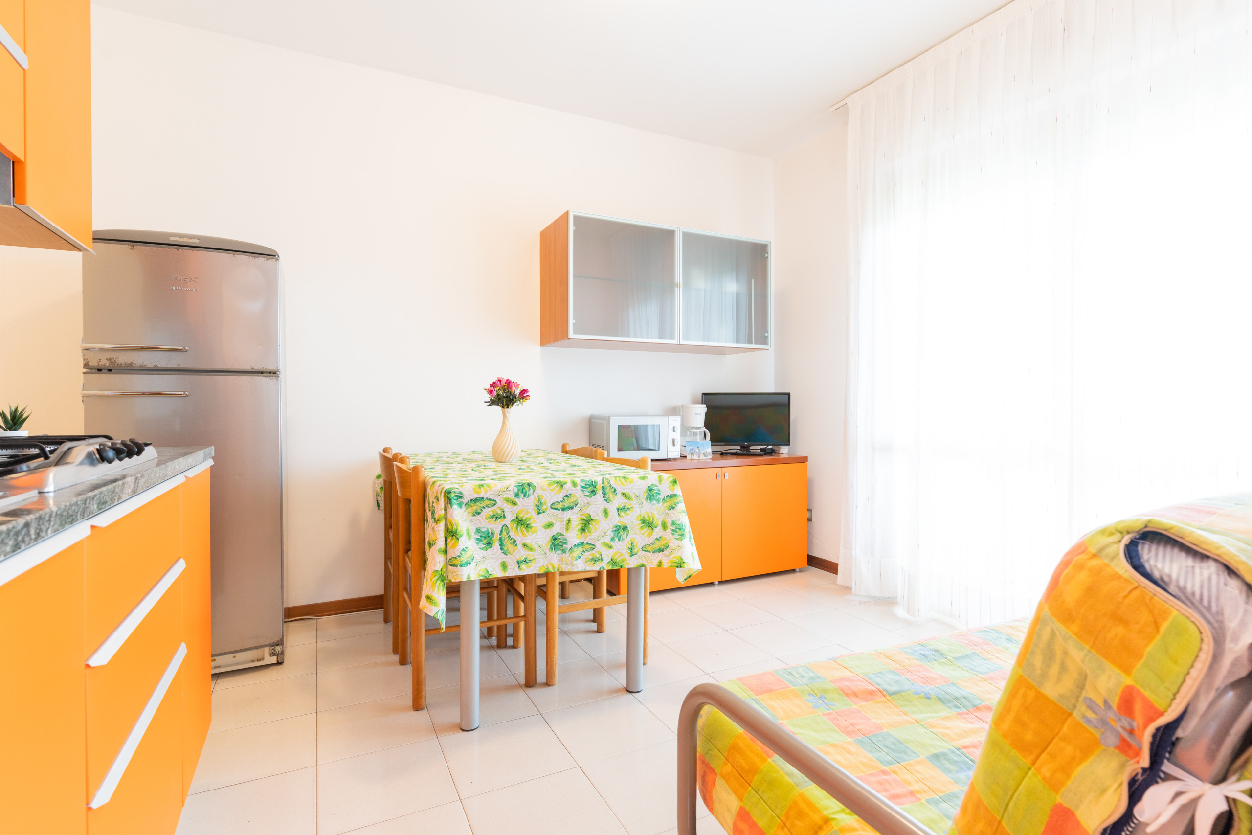 - Soggiorno con angolo cottura attrezzato e divano letto doppio