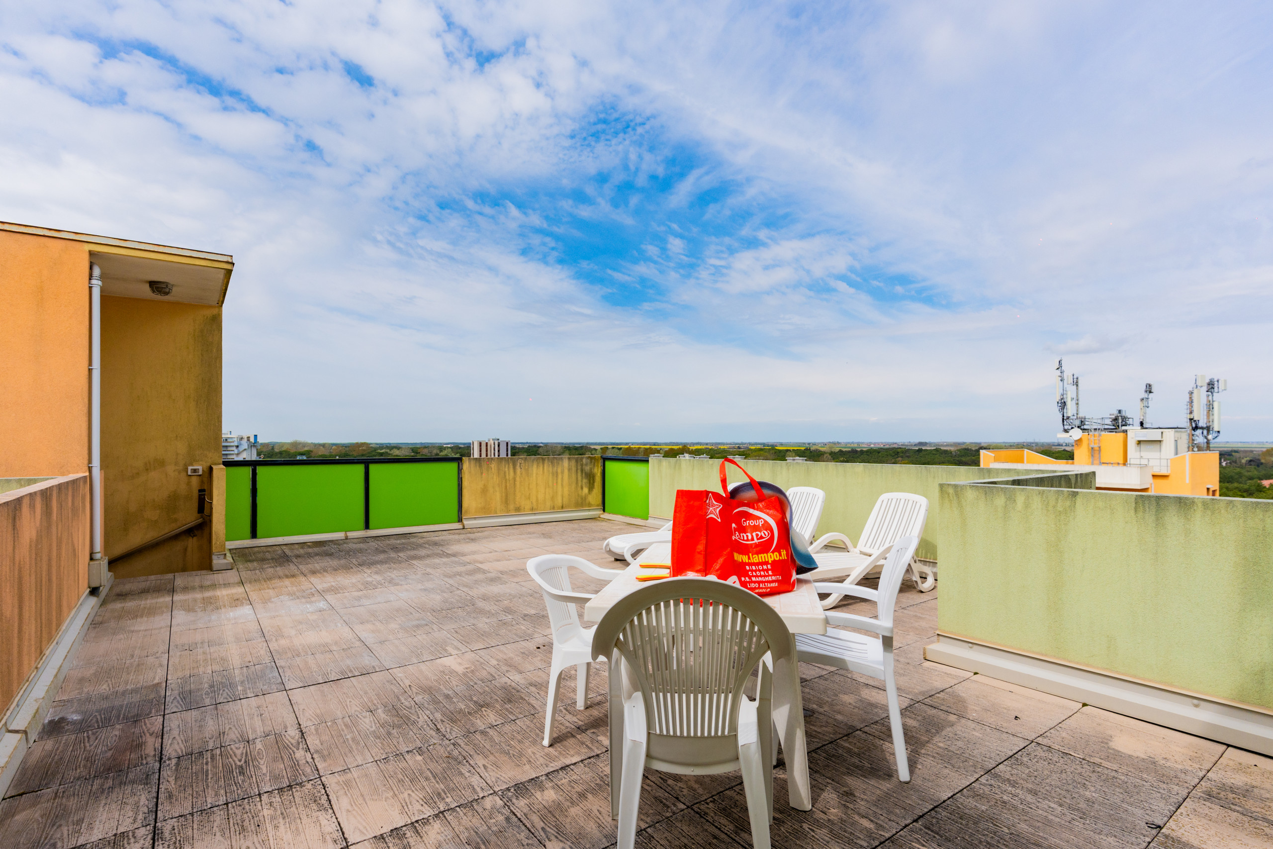 I trilocali rinnovati, situati tra il secondo e terzo piano, offrono ampie terrazze o balconi con esposizione a sud o nord-ovest, ideali per godersi un caffè al sole o una cena all’aperto ammirando scorci diversi di Bibione.