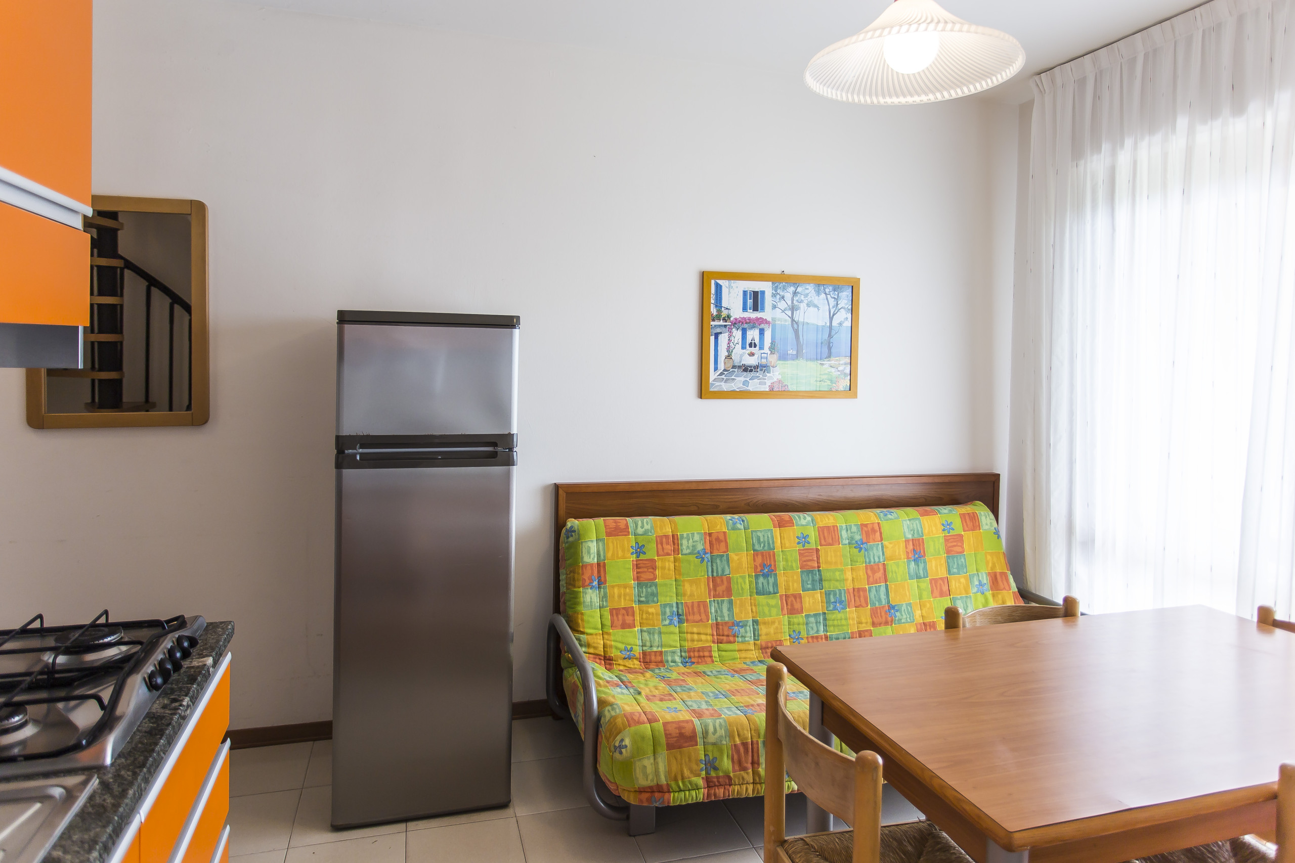 - soggiorno luminoso con angolo cottura e divano letto doppio,
