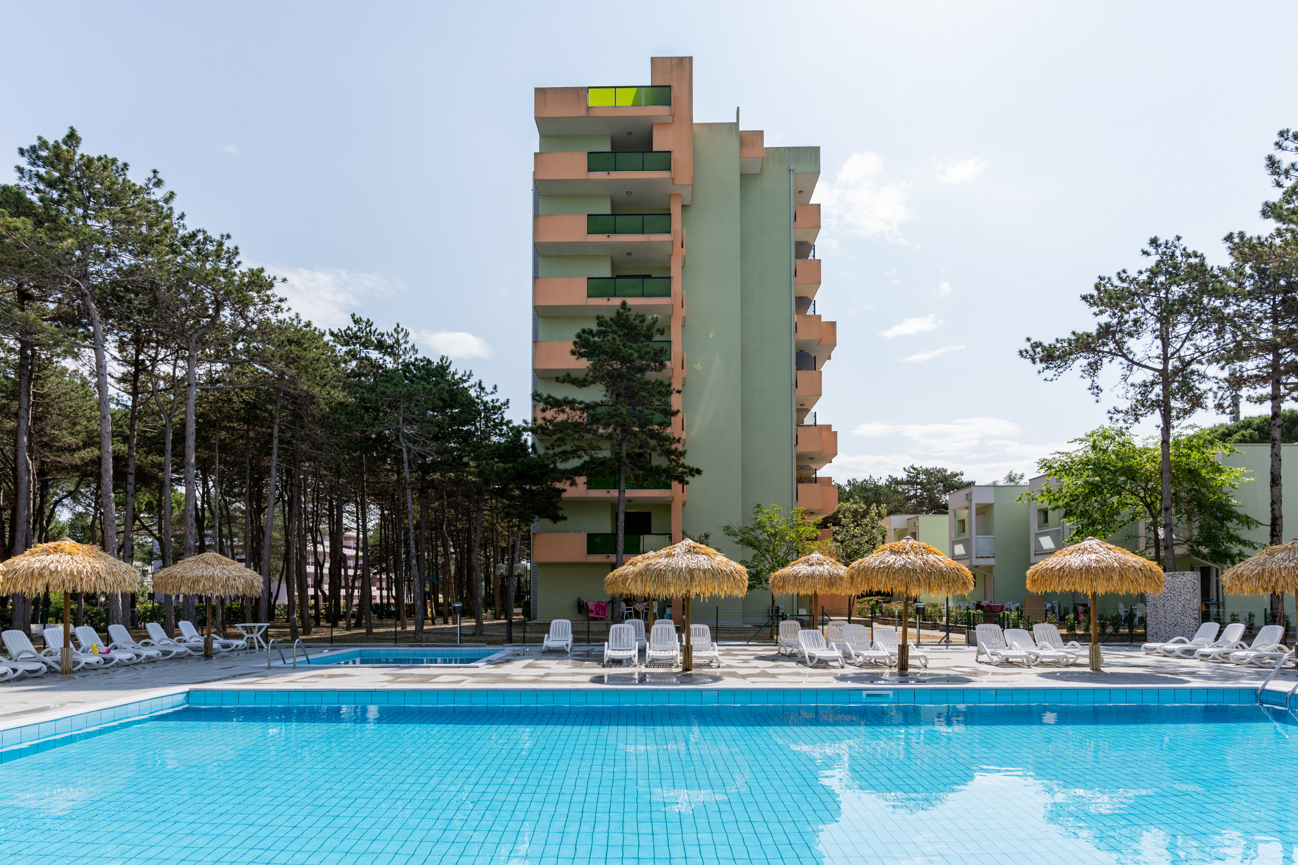 La struttura offre una piscina per adulti e una per bambini, ideale per rinfrescarsi nelle giornate più calde, e un comodo accesso alla spiaggia attrezzata con ombrelloni e lettini riservati, inclusi nel prezzo.