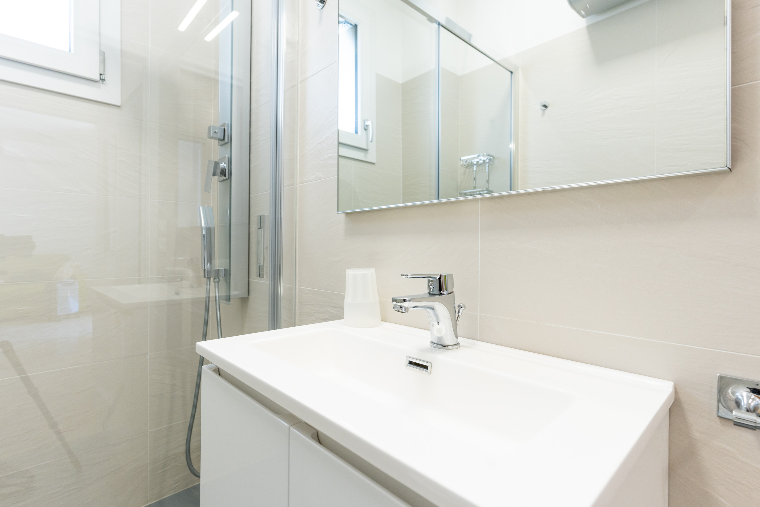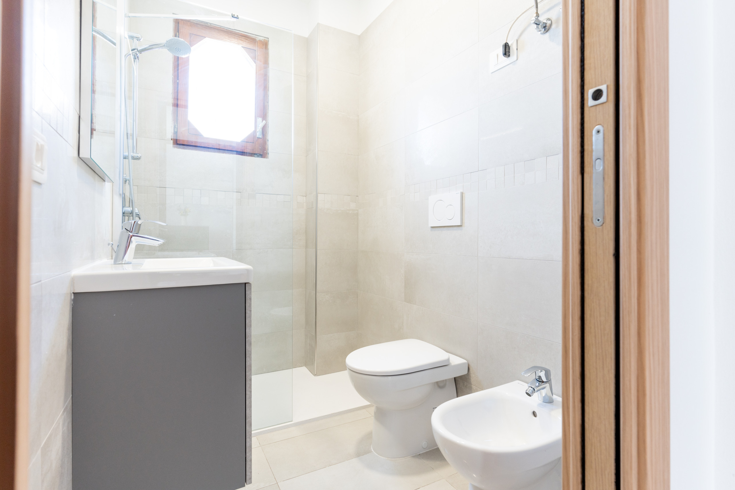 - un bagno moderno e rinnovato con box doccia;