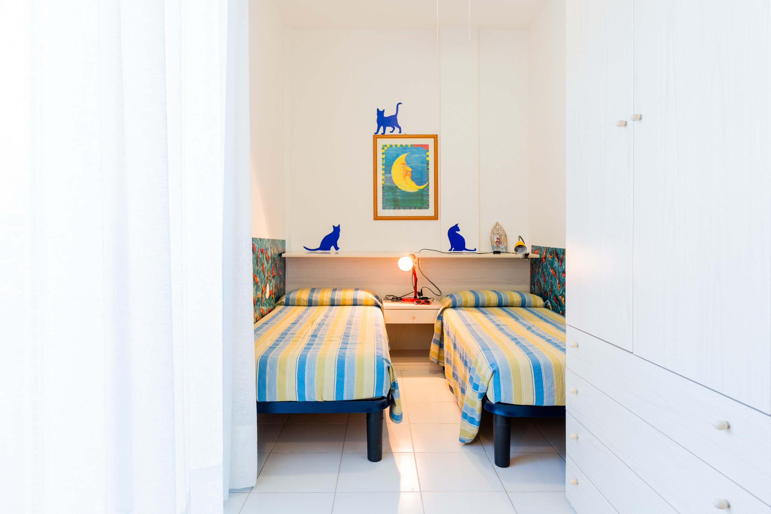 La struttura offre ampi appartamenti trilocali rinnovati, ideali per famiglie o gruppi di amici che desiderano un soggiorno confortevole vicino al mare.