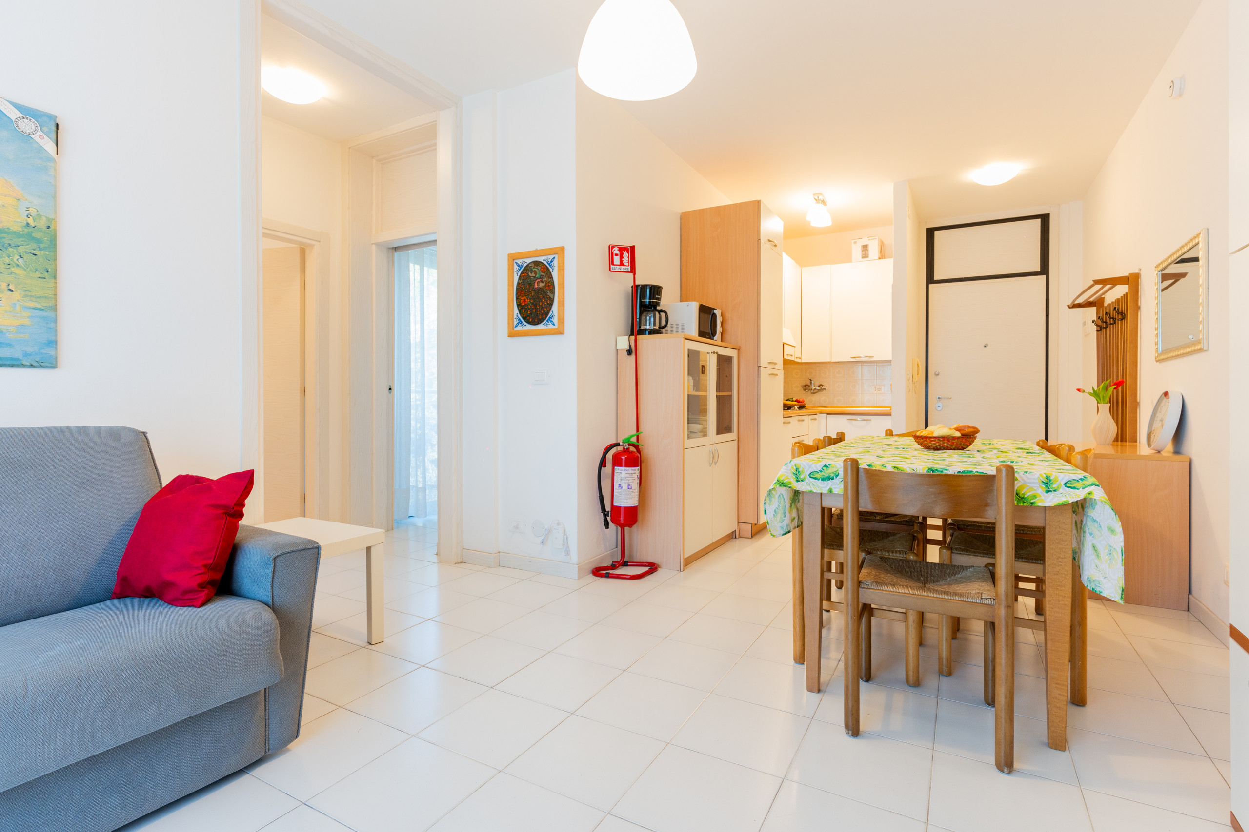 - soggiorno luminoso con angolo cottura attrezzato, divano letto doppio e divano letto singolo;