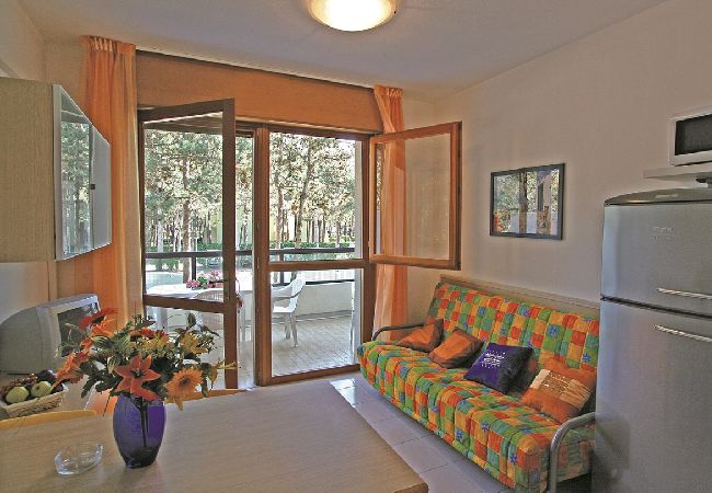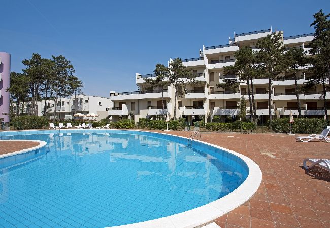 Trilocale composto da soggiorno con angolo cottura e divano letto doppio, camera con letto matrimoniale, camera con due letti singoli, bagno e balcone. Il Campiello è un fabbricato a 400 metri dal mare di Bibione Lido del Sole, ha una piscina per adulti e bambini e lavanderia a gettoni. Tutti gli appartamenti sono stati rinnovati, con vista piscina e dispongono di tv-sat, aria condizionata, forno microonde e portoncino blindato e posto auto numerato.Servizio spiaggia incluso nel prezzo.