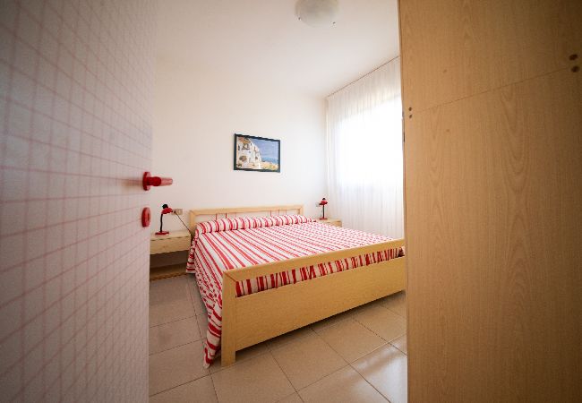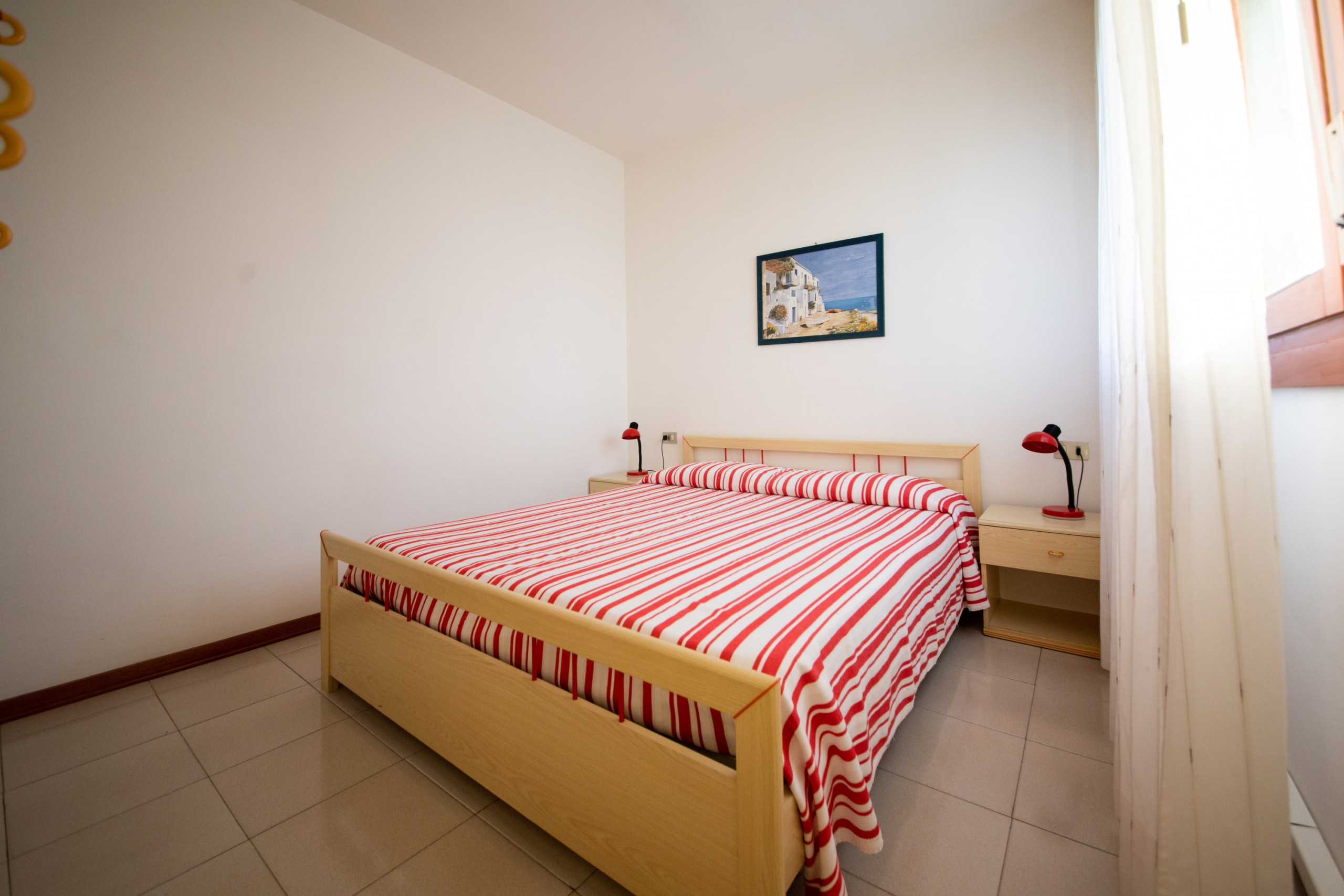 Trilocale situato al settimo piano con terrazzo attico. Composto da soggiorno con angolo cottura e divano letto doppio, camera con letto matrimoniale, camera con letto a castello, bagno con box doccia. Dispone di aria condizionata, frigo a colonna, macchina del caffè tedesca, microonde, portoncino blindato e WIFI, TV-SAT. Posto auto numerato scoperto.