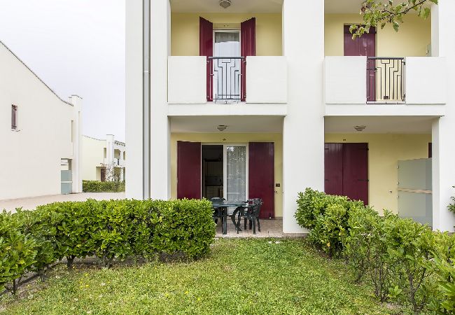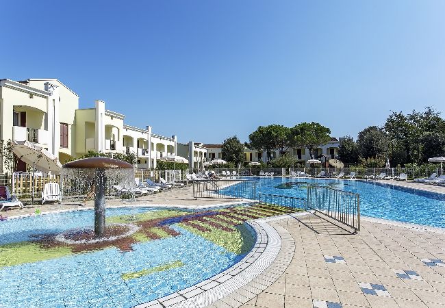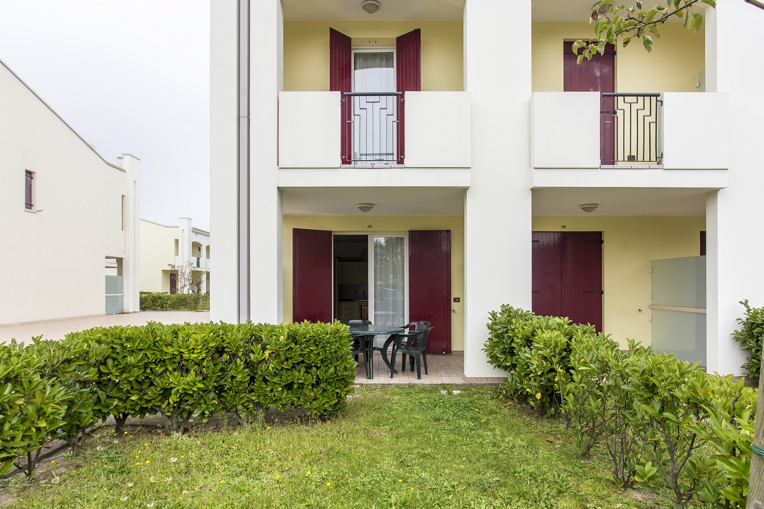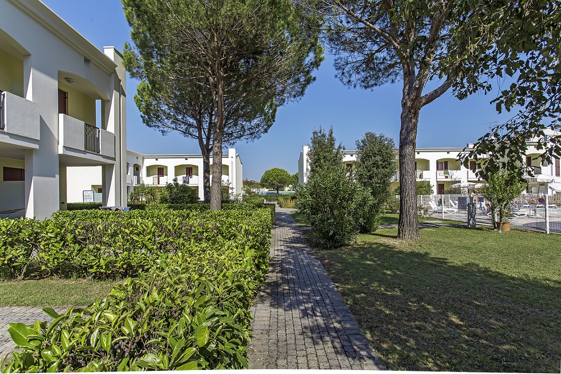 Appartamento bilocale disposto su due piani con giardino; al piano terra soggiorno con angolo cottura e divano letto doppio; al piano superiore una camera da letto a tre letti, bagno. Calycanthus è un villaggio composto da villette a schiera disposte su due piani, arredate in modo confortevole e moderno, quasi tutte con piccolo giardino privato, con posto auto coperto nell'autorimessa o posto auto esterno scoperto. Nel giardino comune disponibili giochi per bambini e piscina con wifi gratuito. Tutti gli appartamenti sono dotati di aria condizionata, tv sat, frigo a colonna, caffettiera tedesca, asciugacapelli e cassaforte. Servizio spiaggia incluso nel prezzo.