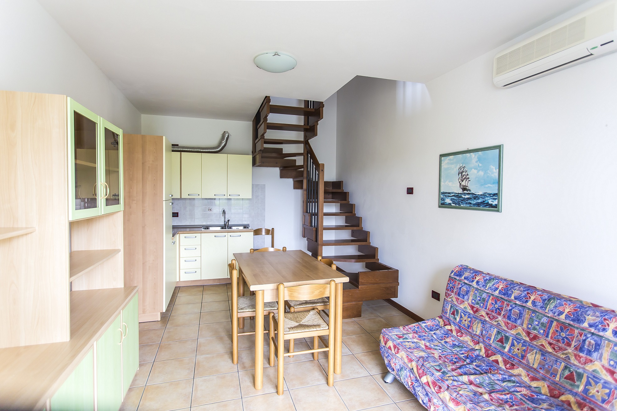 - un soggiorno con angolo cottura attrezzato e divano letto doppio, ideale per rilassarsi in compagnia;
