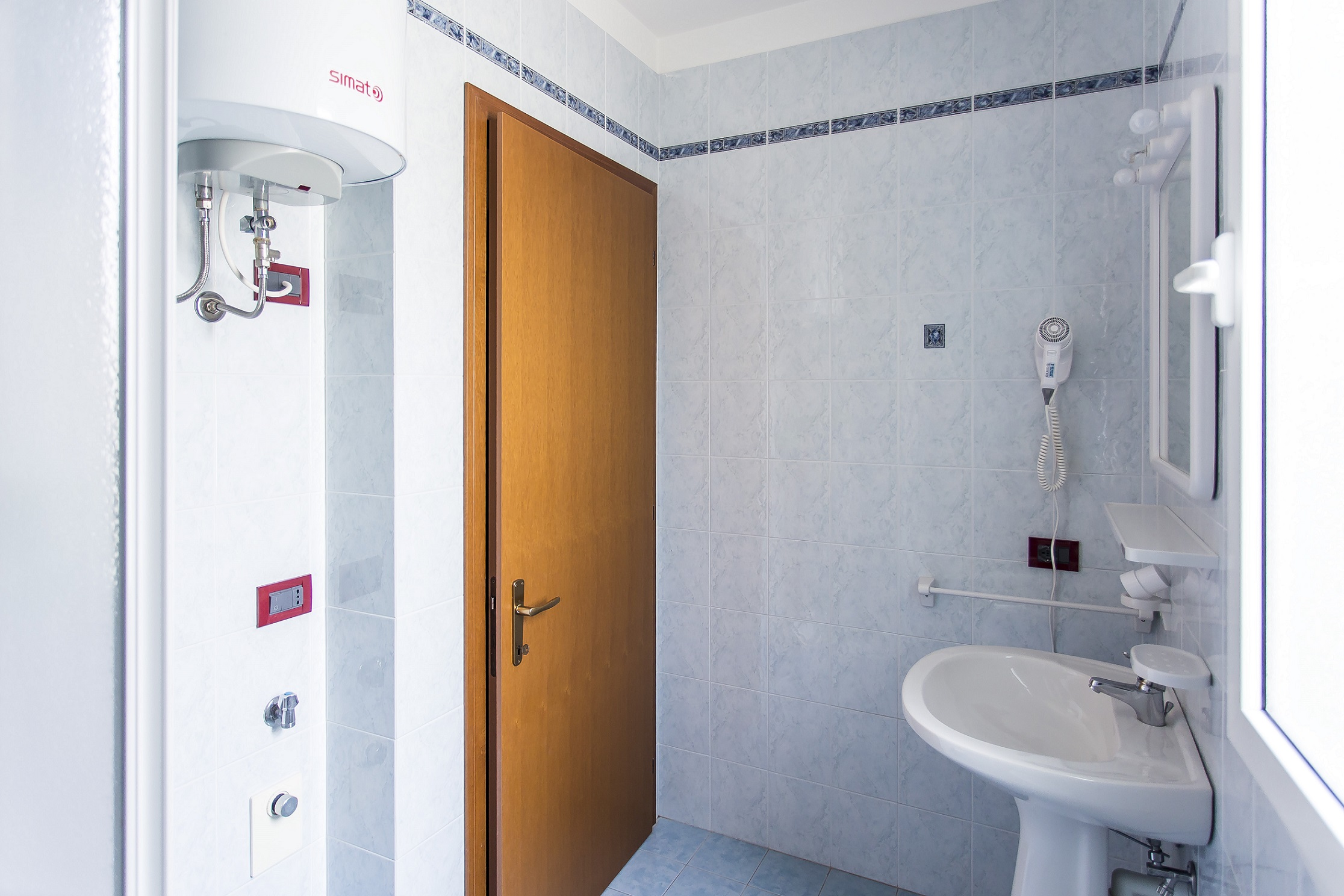 Il bilocale al quarto piano regala spazi luminosi e un ampio terrazzo esposto a nord-est, perfetto per gustare la colazione all’aperto o rilassarsi dopo una giornata di mare.