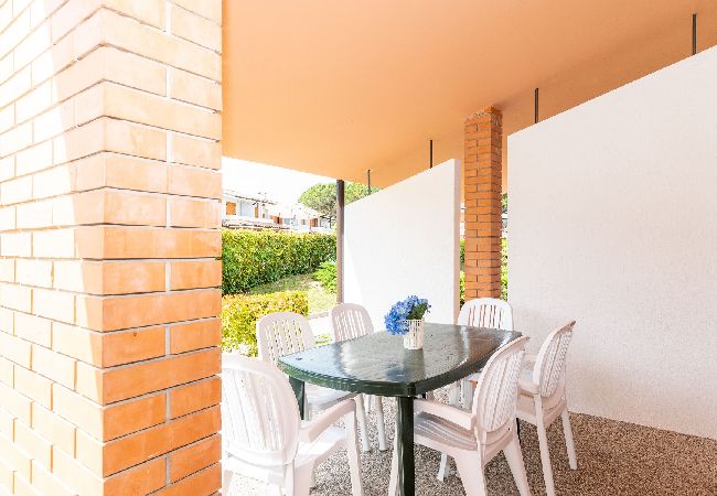 Appartamento trilocale su due piani con giardinetto e caminetto, vista piscina. Composto da soggiorno con angolo cottura e divano letto doppio, camera con letto matrimoniale, camera con due letti singoli e bagno. Villaggio Sole B è un piccolo villaggio con piscina situato in posizione tranquilla a Bibione, a 1.200 m. dal mare. Il villaggio dispone di appartamenti trilocali disposti su due piani con parcheggio coperto e caminetto, oppure situati al piano terra o primo piano con parcheggio scoperto.Tutti gli alloggi sono dotati di tv sat. Servizio spiaggia incluso nel prezzo.