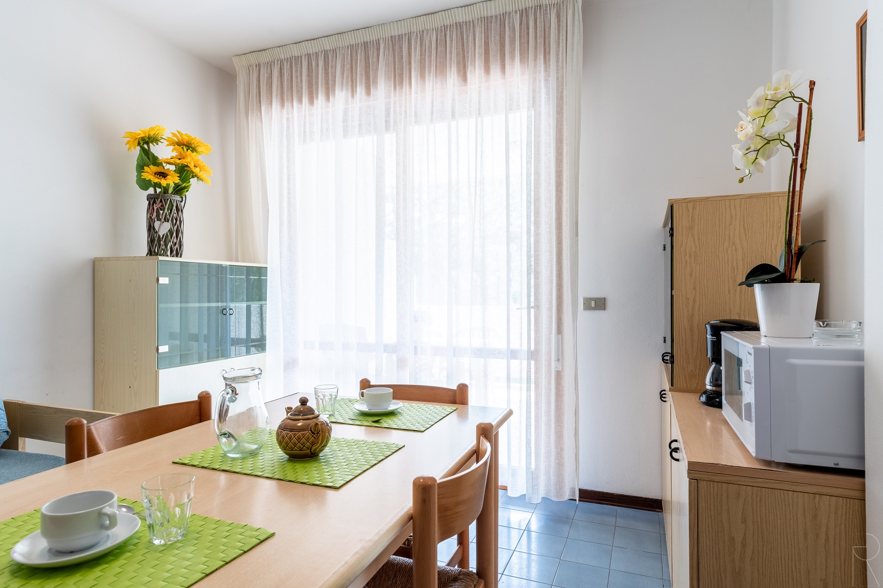 Trilocale composto da soggiorno con angolo cottura e divano letto doppio, camera con letto matrimoniale, camera con due letti singoli, bagno e balcone. Sporting Residence 1 è un complesso che si sviluppa in 3 fabbricati, con custode, immerso in un ampio parco. Non lontano dal mare di Bibione Lido del Sole, dotato di piscina e giochi per bambini. Si possono trovare appartamenti tipo bilocale o trilocale, alcuni rinnovati, tutti con aria condizionata e tv-sat. Tutti gli appartamenti dispongono di ampie terrazze e parcheggi numerati scoperti o coperti. Servizio spiaggia incluso nel prezzo.