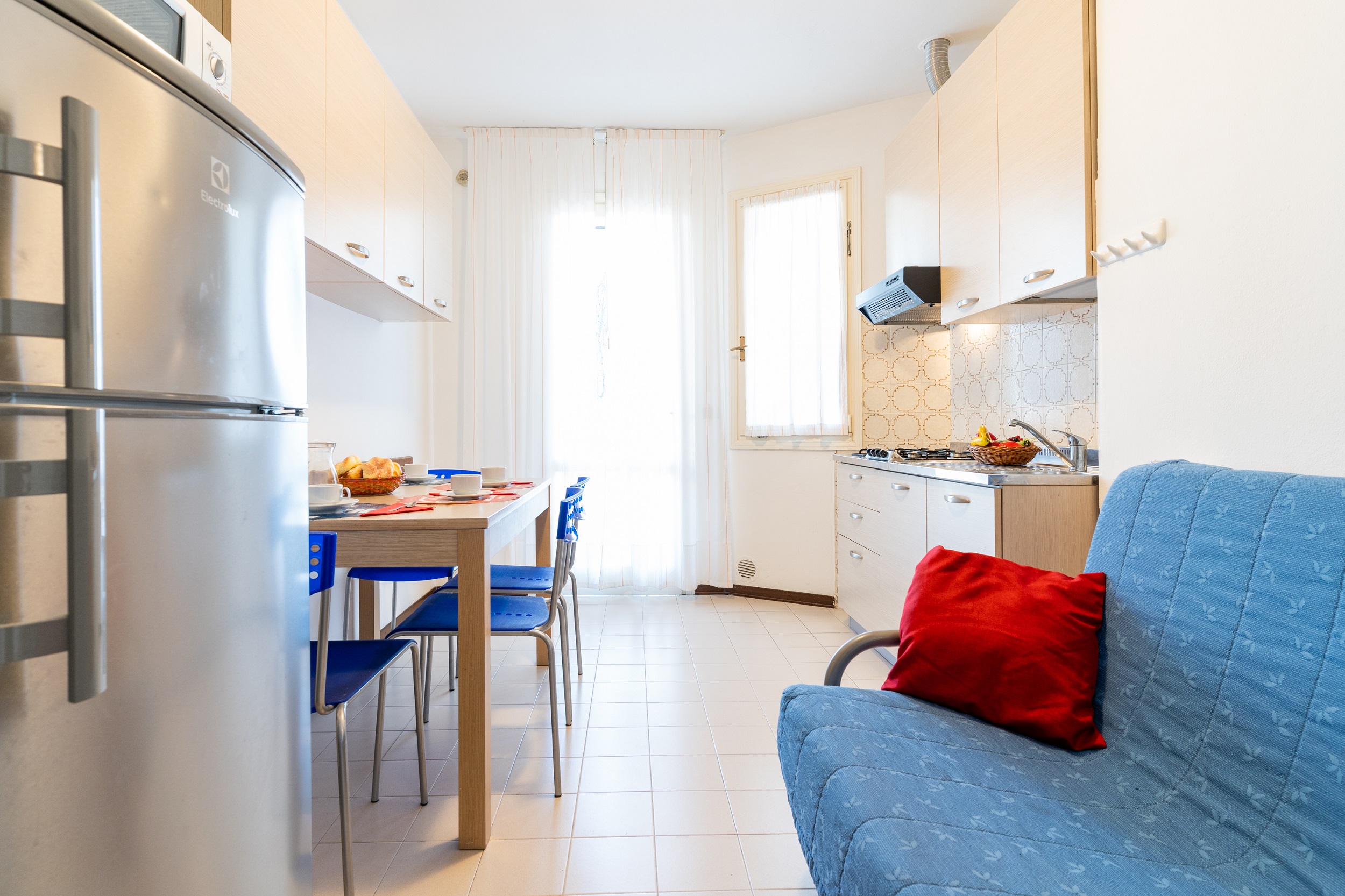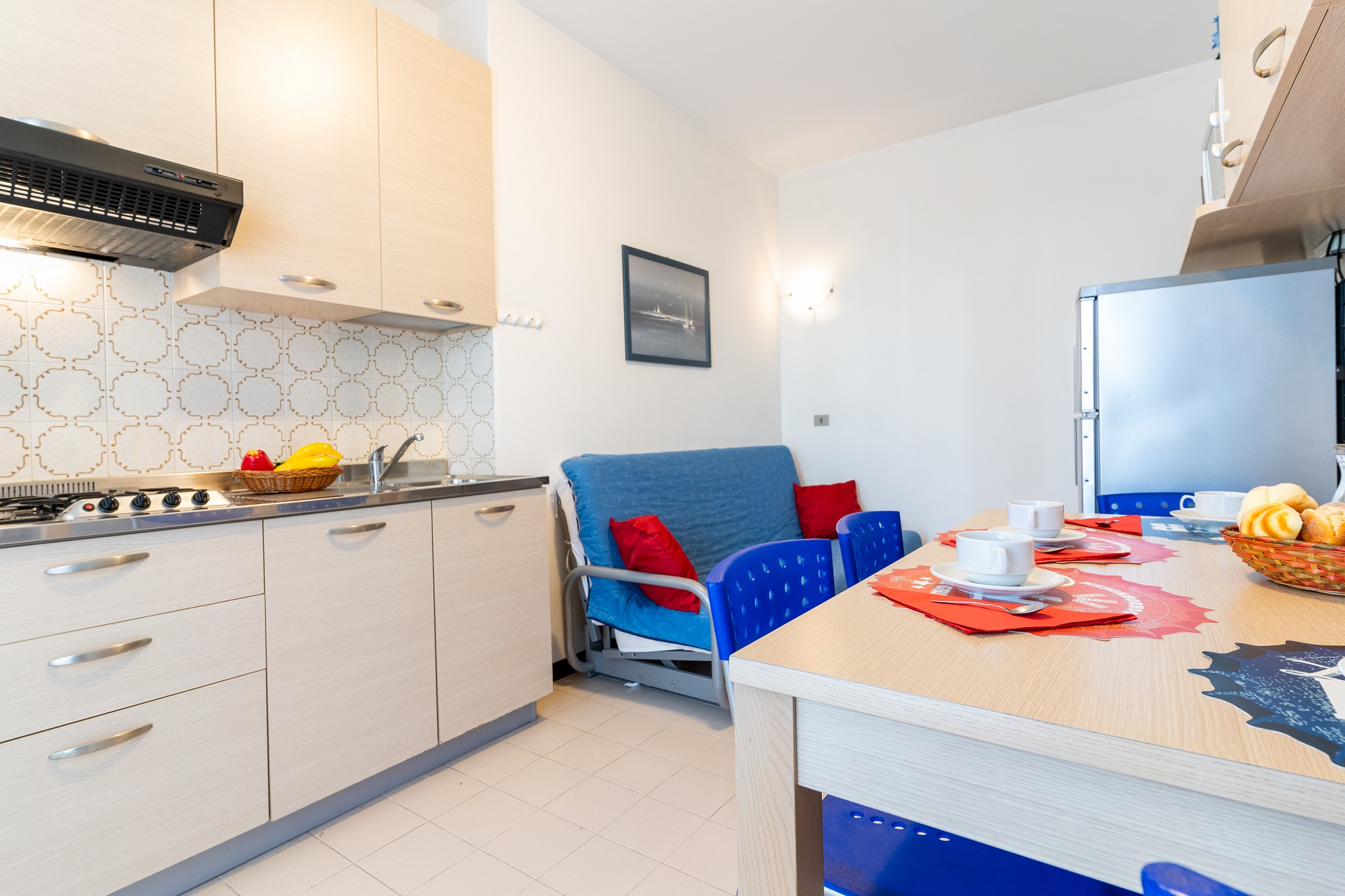- un soggiorno con angolo cottura attrezzato e divano letto doppio, ideale per rilassarsi in compagnia;