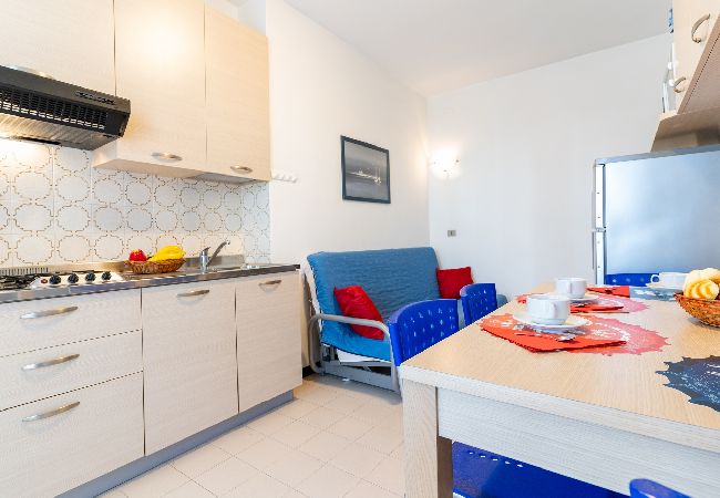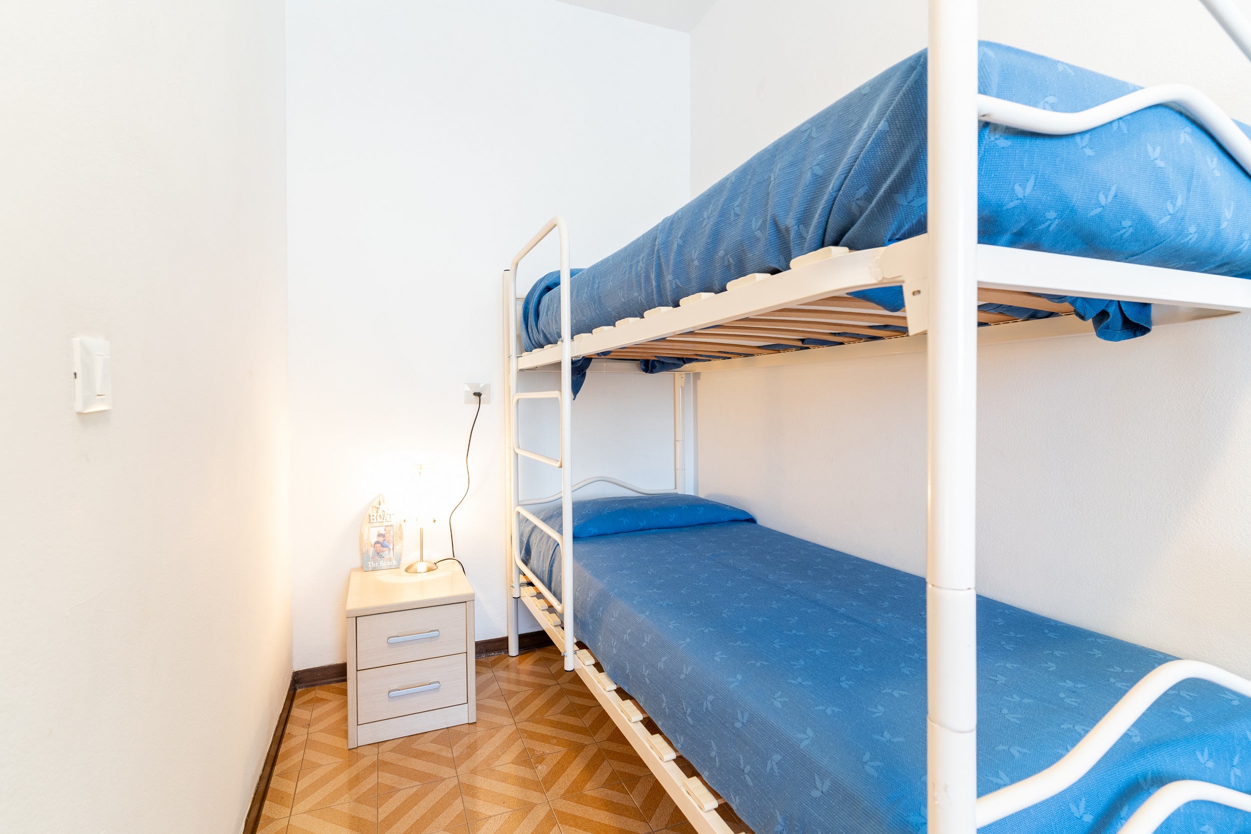 Il bilocale al quarto piano regala spazi luminosi e un ampio terrazzo esposto a nord-est, perfetto per gustare la colazione all’aperto o rilassarsi dopo una giornata di mare.