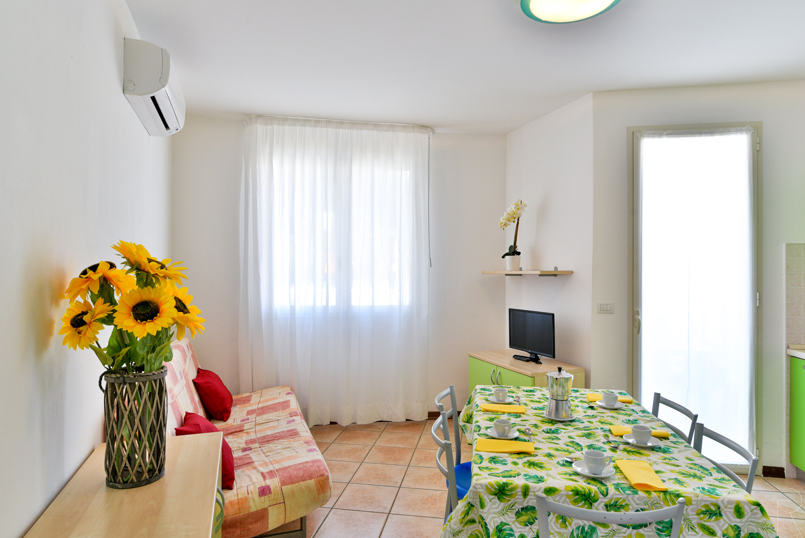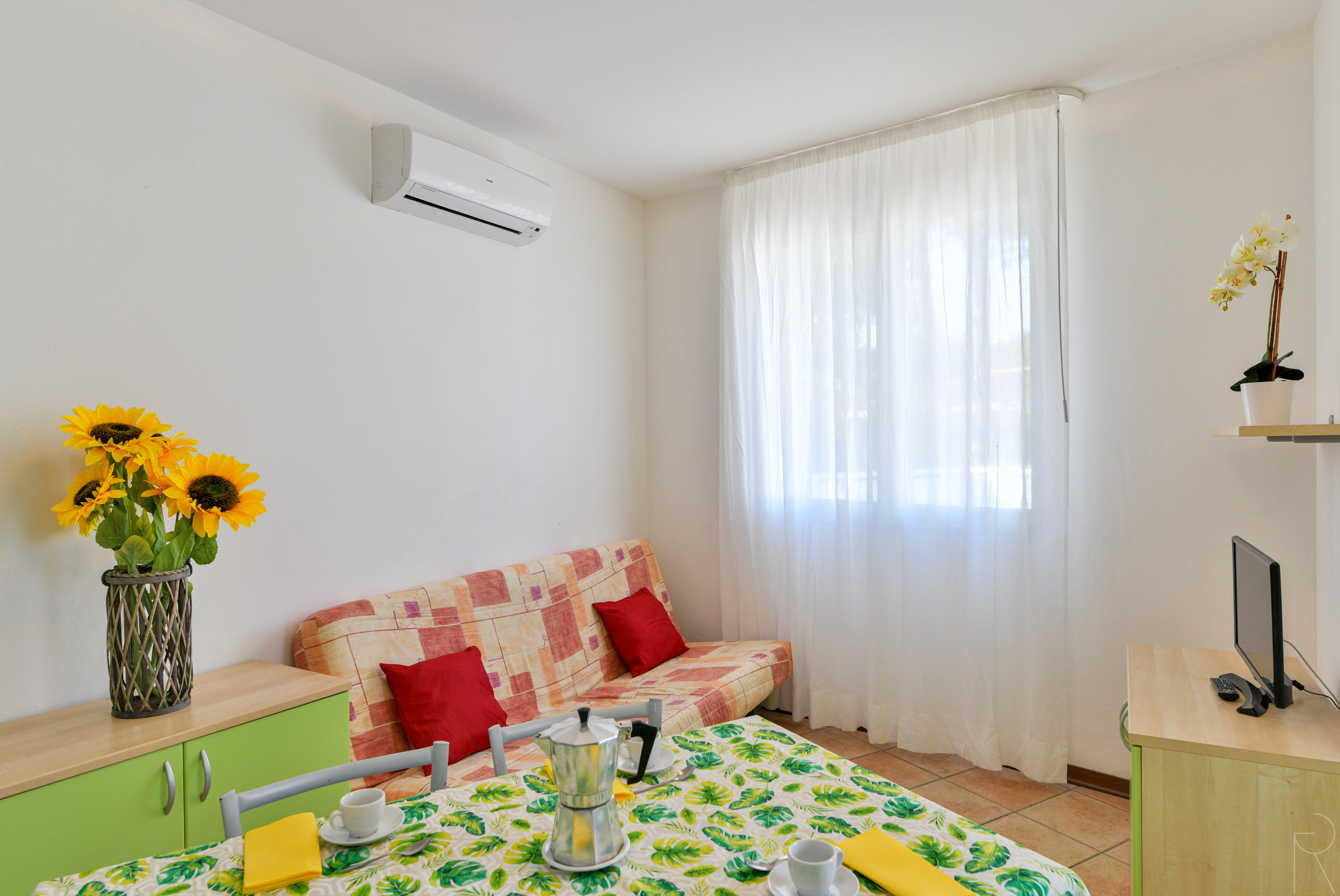 - un soggiorno con angolo cottura attrezzato e divano letto doppio, ideale per rilassarsi in compagnia;