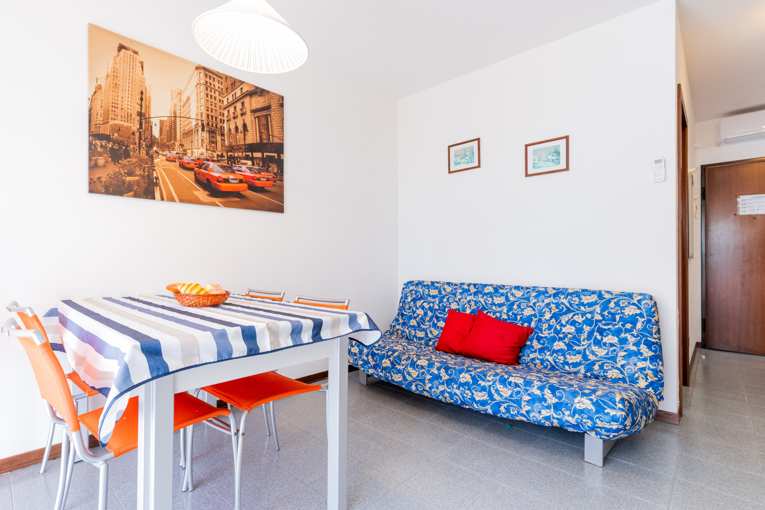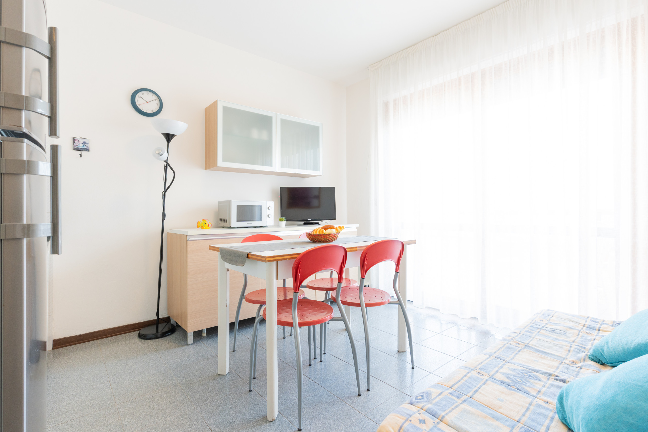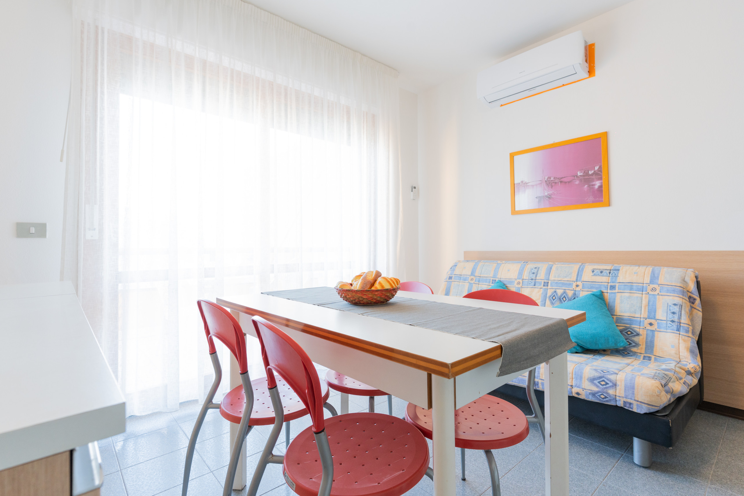 - soggiorno luminoso con angolo cottura attrezzato e divano letto doppio,