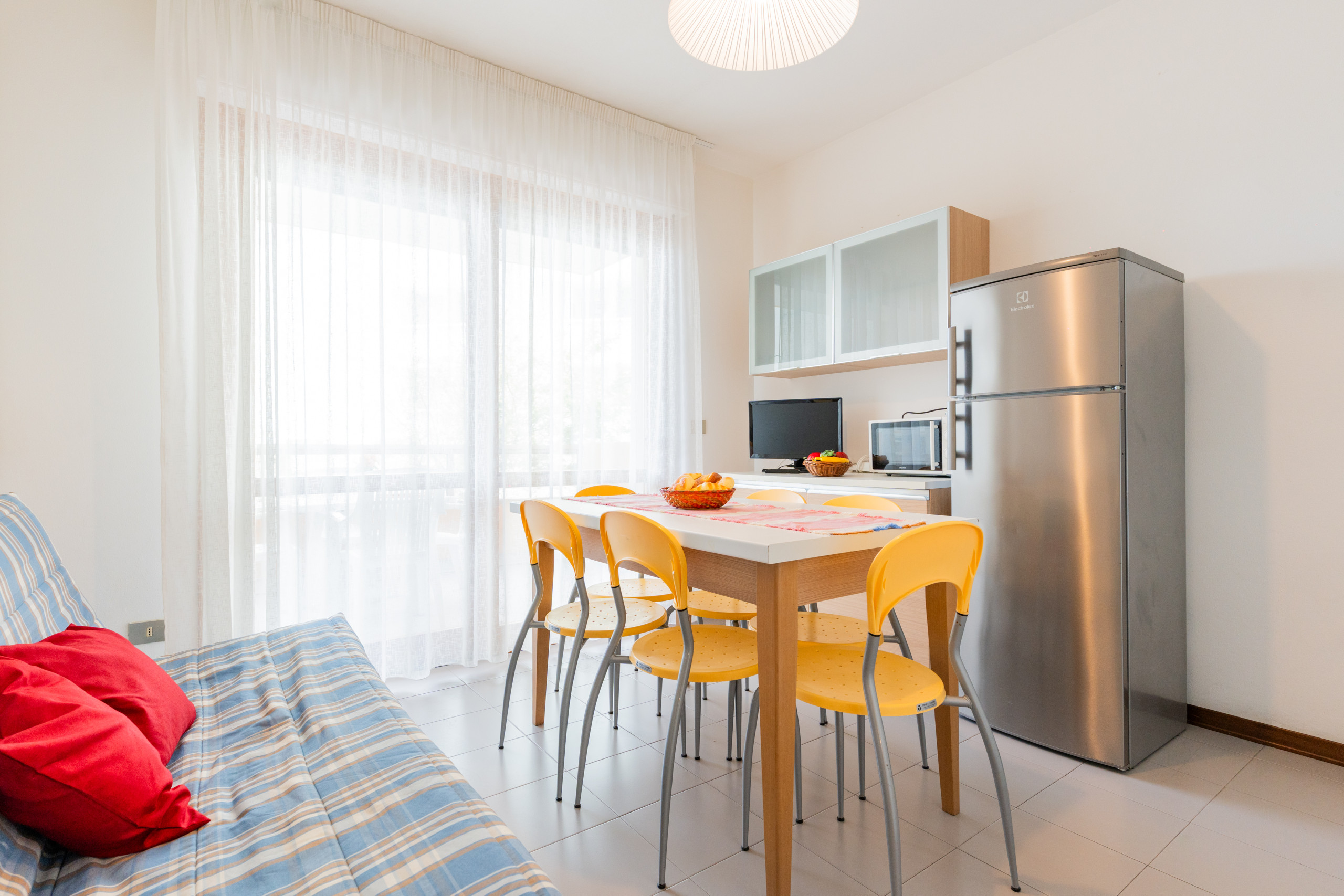 Ogni appartamento dispone di aria condizionata, TV-SAT LCD, frigorifero a colonna, microonde, macchina del caffè tedesca e portoncino blindato, per garantirti comodità e sicurezza durante tutto il soggiorno.