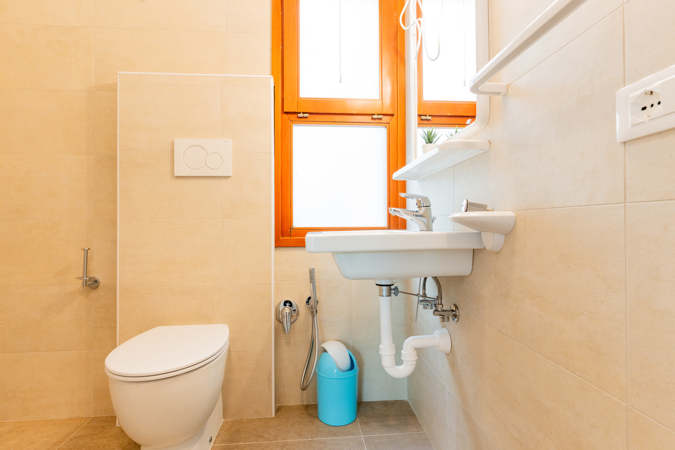 - bagno finestrato con cabina o tenda doccia.