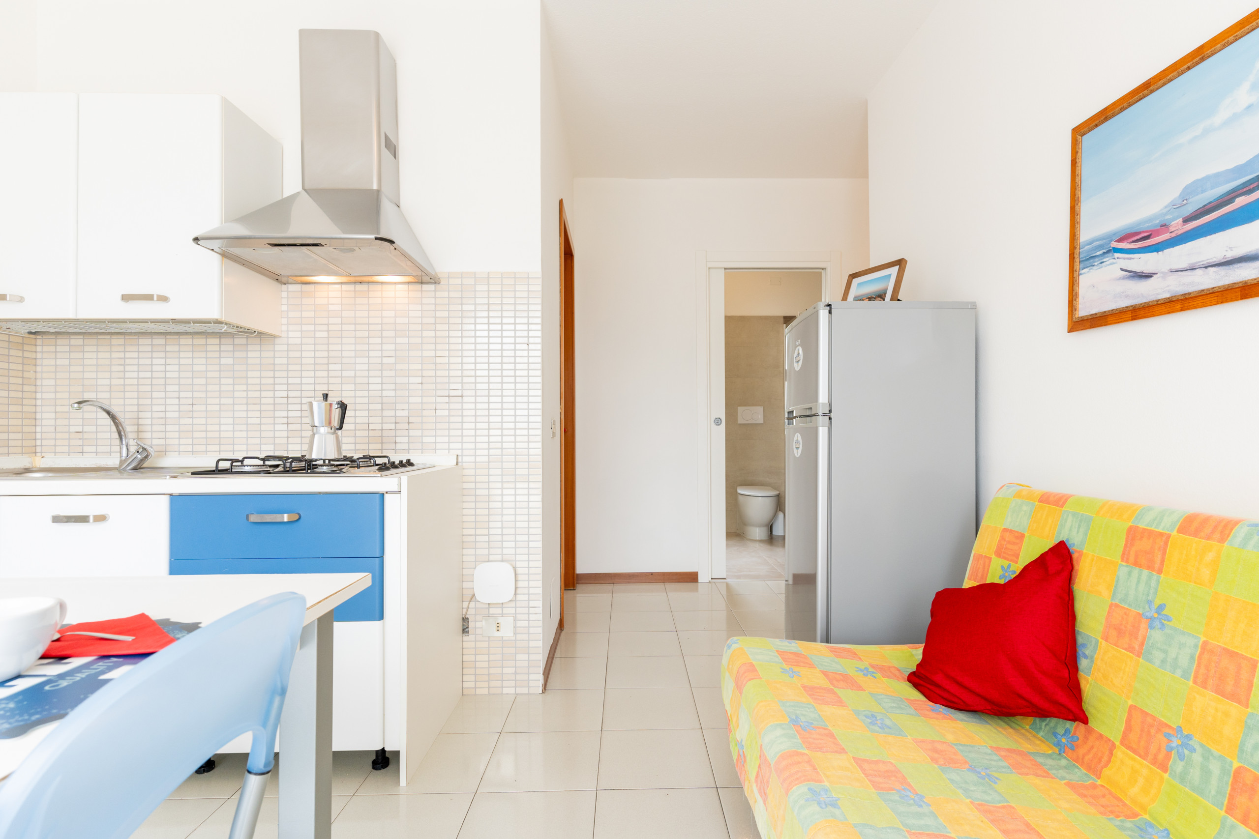 - soggiorno con angolo cottura attrezzato e divano letto doppio,