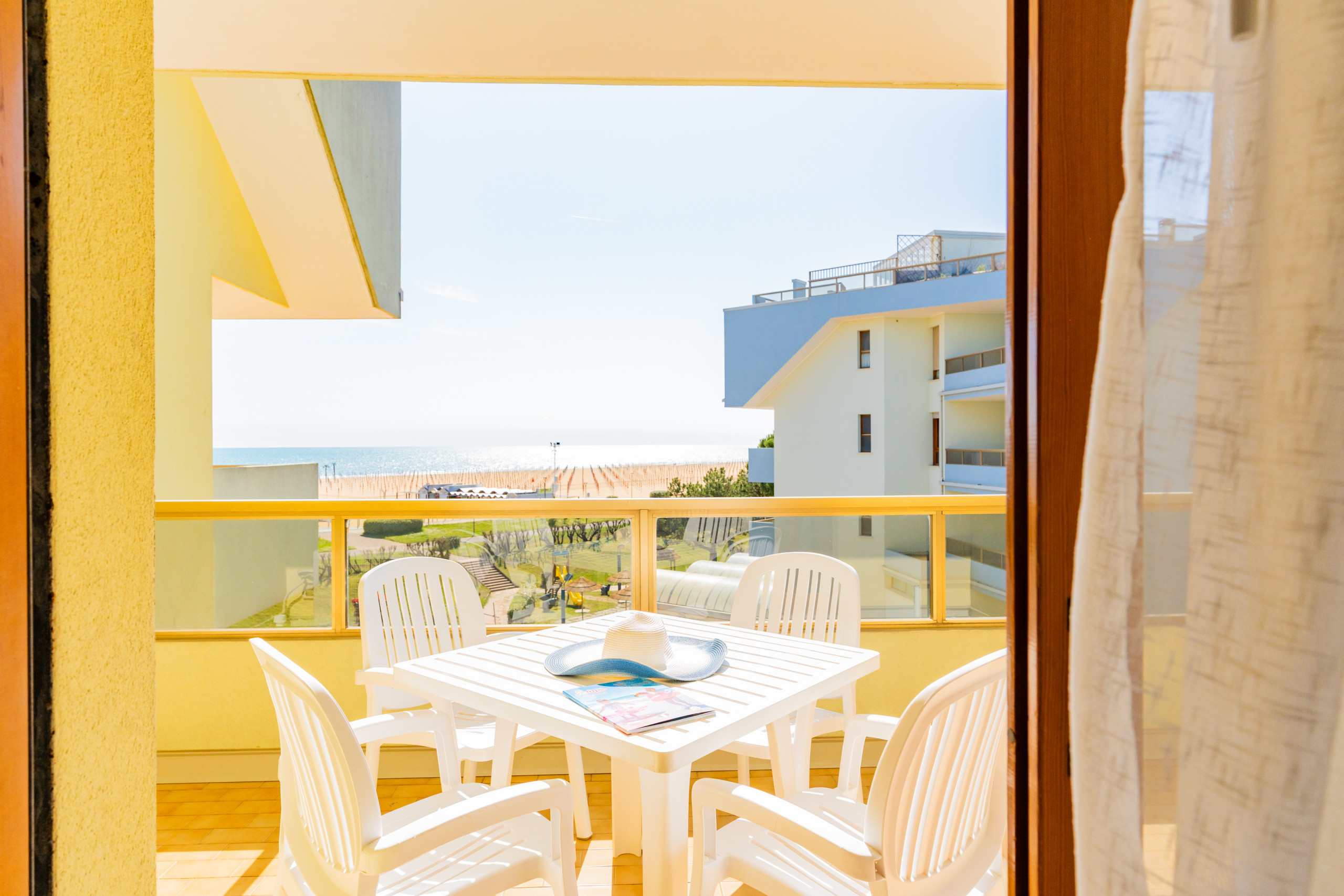 Gli appartamenti, situati tra il primo e il terzo piano, dispongono di un balcone con varie esposizioni — soleggiato al mattino o al pomeriggio, con vista mare, piscina o interna — perfetto per godersi l’atmosfera rilassata del Lido del Sole.