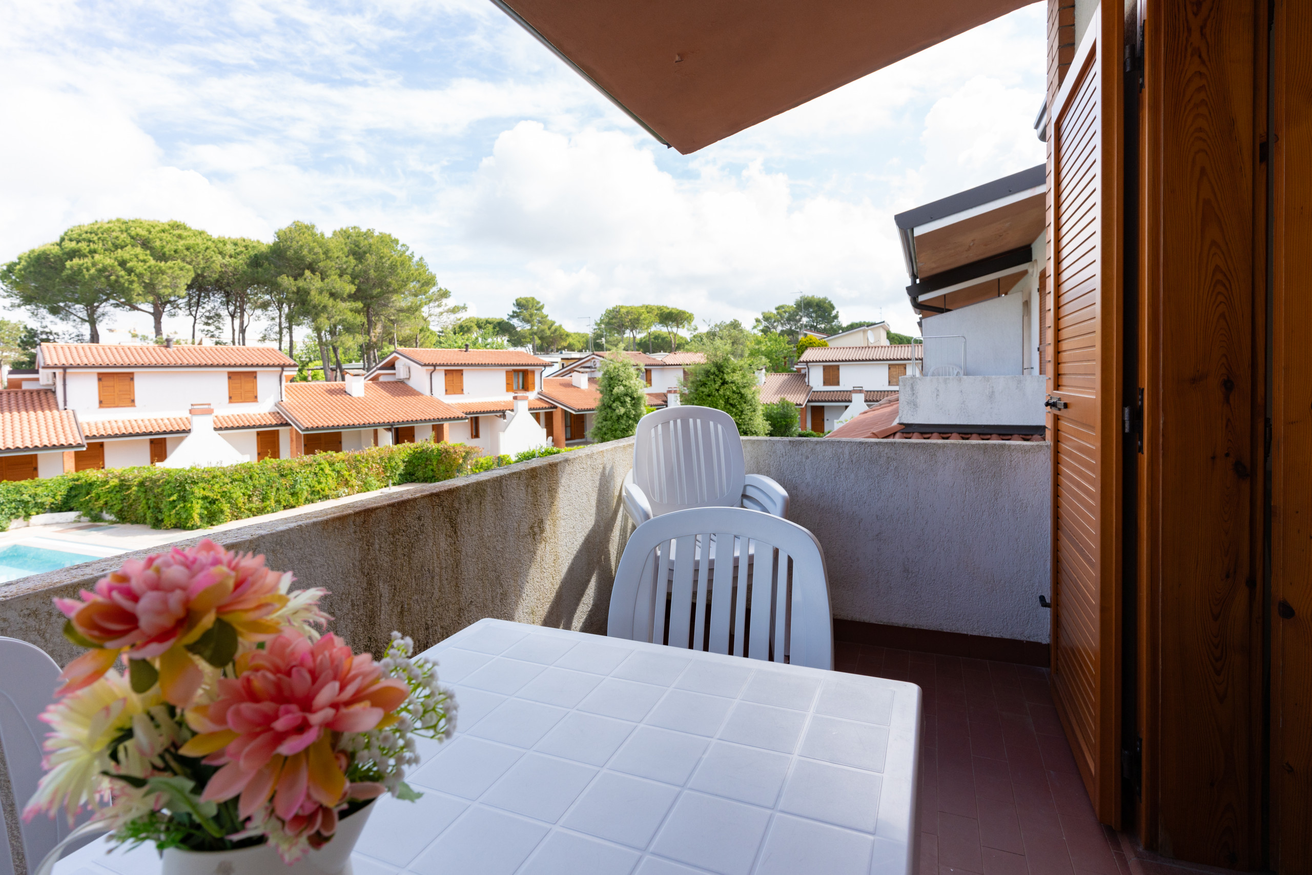 Gli appartamenti trilocali sono disponibili sia al piano terra, con giardinetto privato, sia al primo piano, con balcone arredato, entrambi ideali per godersi pranzi, cene o momenti di relax all’aperto. Le esposizioni e le viste variano, con possibilità di affaccio sulla piscina o sul viale.