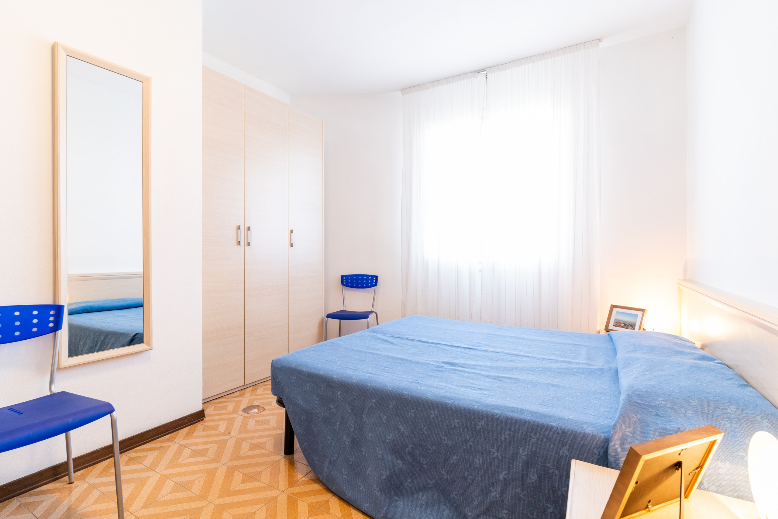 Il bilocale al quarto piano regala spazi luminosi e un ampio terrazzo esposto a nord-est, perfetto per gustare la colazione all’aperto o rilassarsi dopo una giornata di mare.