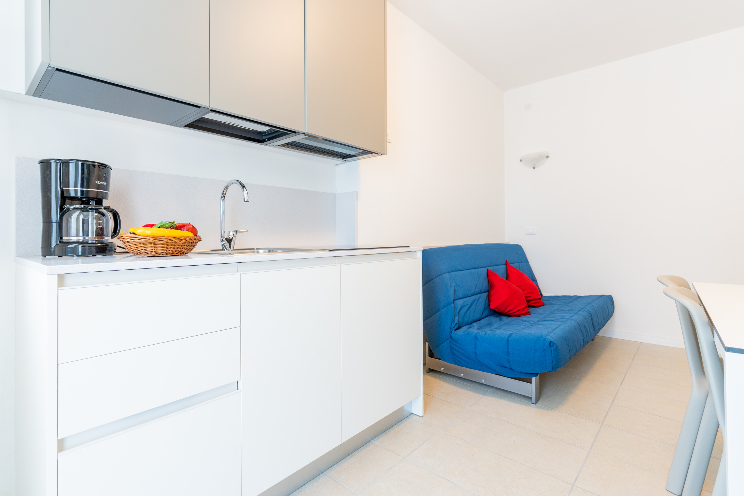 - un soggiorno con angolo cottura attrezzato e divano letto doppio, ideale per rilassarsi in compagnia;