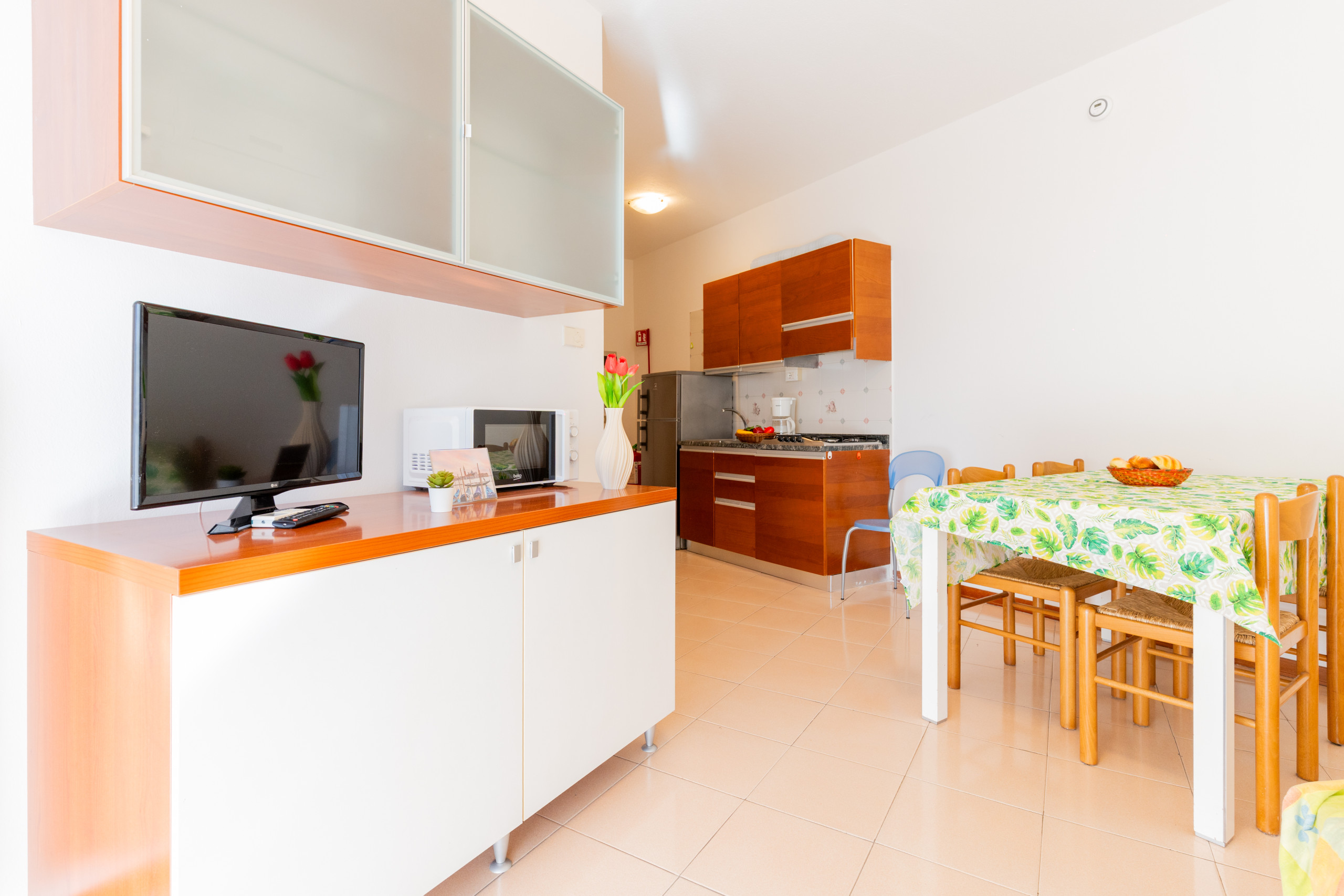 - soggiorno con angolo cottura attrezzato e divano letto doppio,