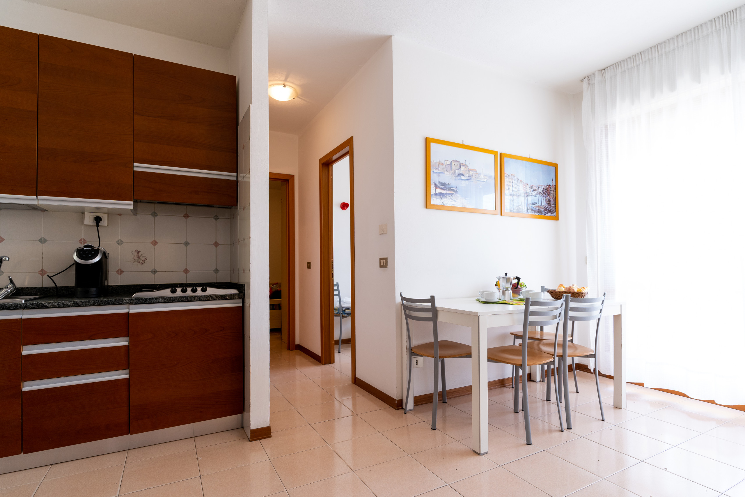 I trilocali rinnovati, situati tra il secondo e terzo piano, offrono ampie terrazze o balconi con esposizione a sud o nord-ovest, ideali per godersi un caffè al sole o una cena all’aperto ammirando scorci diversi di Bibione.