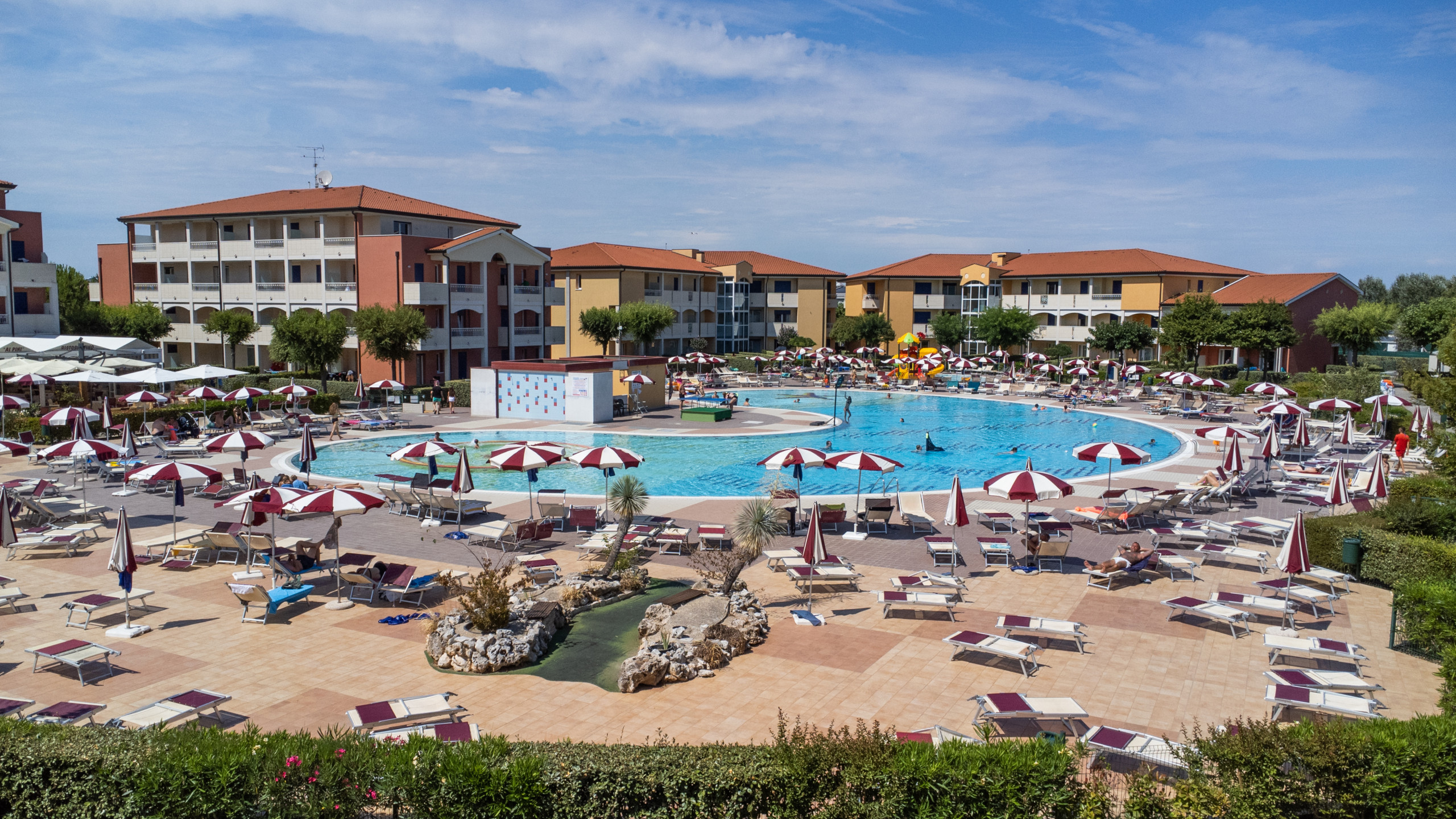All'interno del villaggio si trovano due piscine, una molto ampia e centrale completa di idromassaggio, e una dedicata ai più piccoli, dotata di un divertente "fanta-scivolo". Potrai goderti il sole e il relax sull’ampio plateatico, i bambini saranno intrattenuti dallo staff di animazione che effettua anche attività fitness in piscina per gli adulti e per i ragazzi lo youth club propone gare di ping pong, canestro in acqua e molte altre attività divertenti. Inoltre affacciato sulla suggestiva piscina, troverai un bel chiringuito dove gustare bevande o un bel gelato rinfrescante.