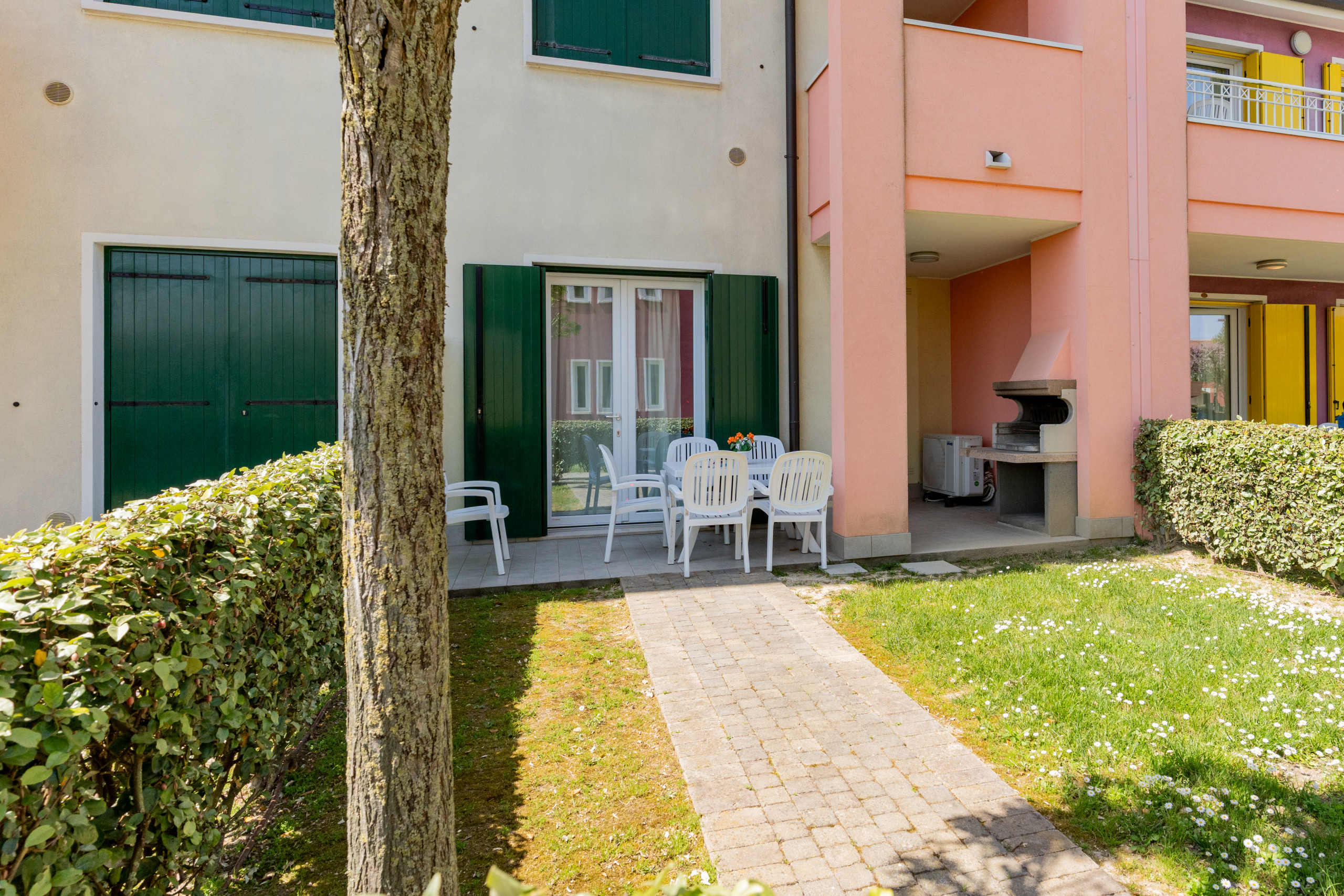 Benvenuti del Villaggio Ai Carpini, i nostri splendidi appartamenti moderni trilocali di 67 mq situati al piano terra, sono ideali per un soggiorno all'insegna di comfort e tranquillità. Questi alloggi offrono un giardino privato, con alcuni dotati di BBQ personale, per un'esperienza di relax all'aperto.