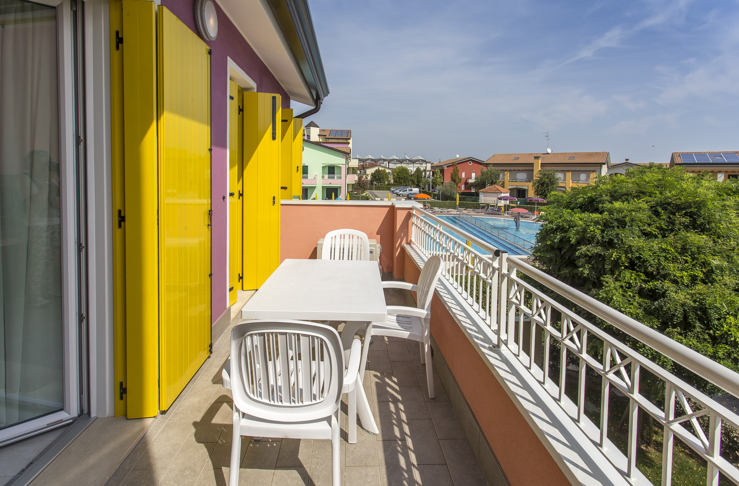 Le villette godono di esposizioni diverse: verso la piscina oppure verso il vialetto interno. Alcune unità dispongono di giardino e portico arredato, altre di solo portico, sempre attrezzato con tavolo e sedie esterne, ideale per pranzi e cene all’aperto.