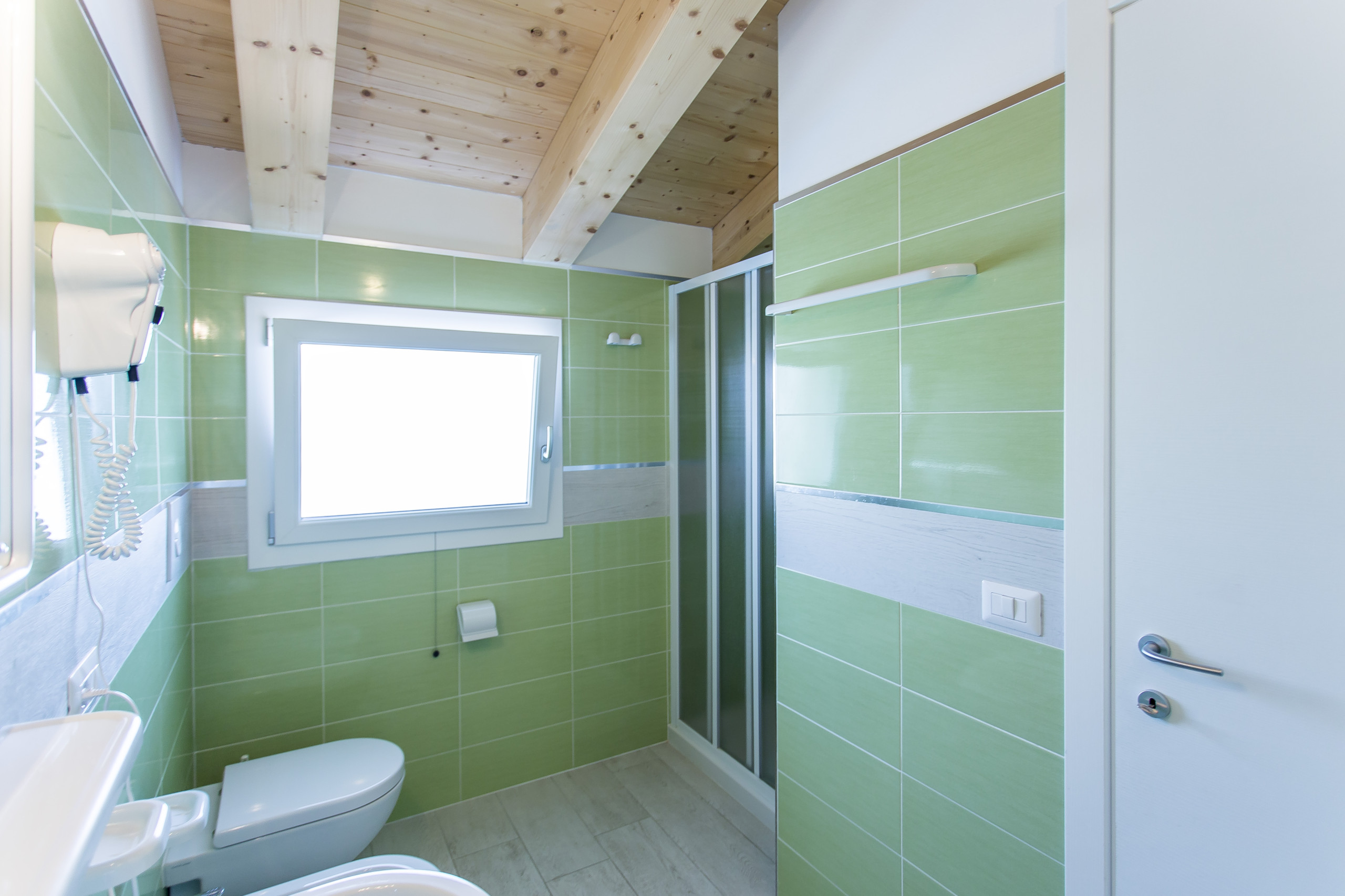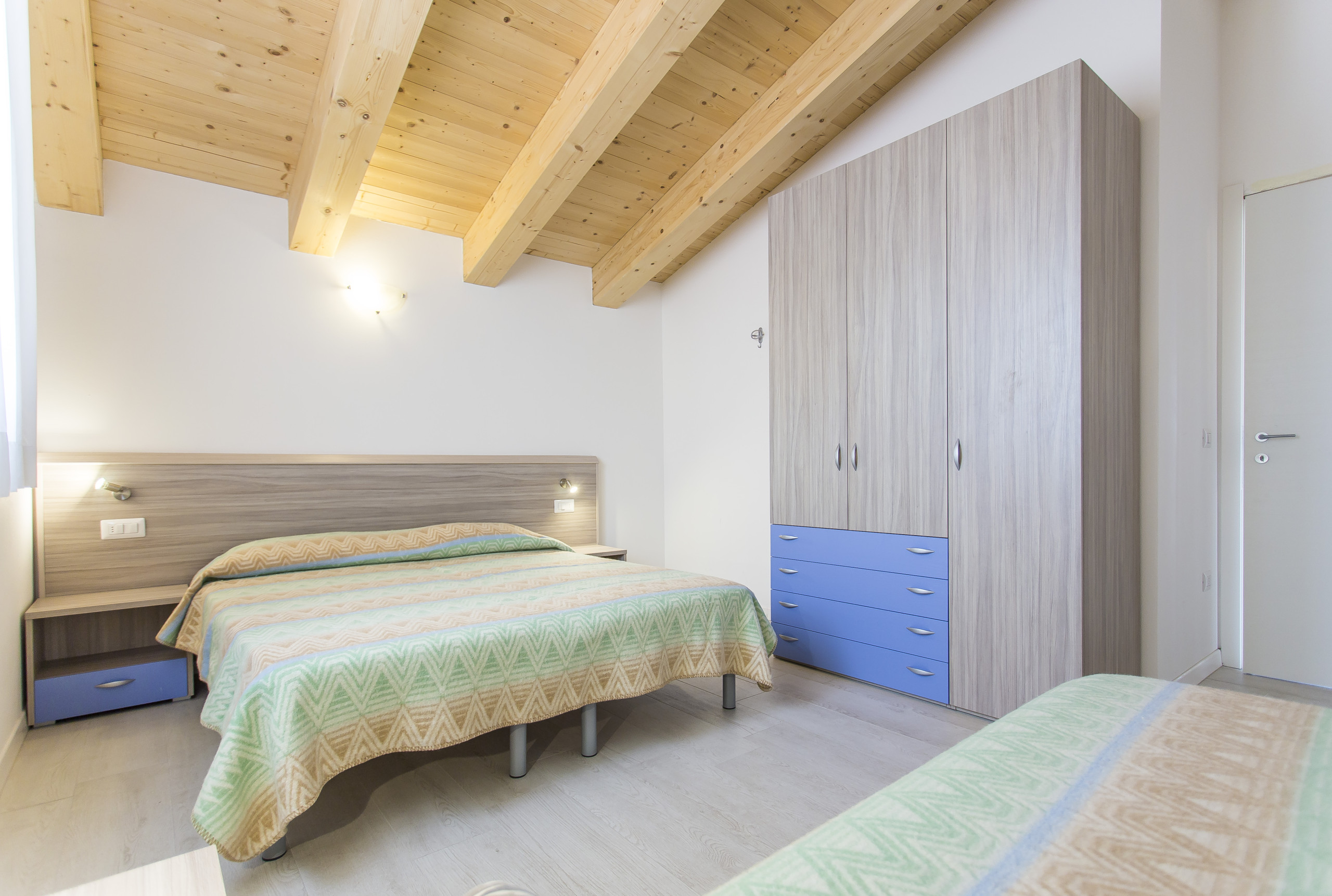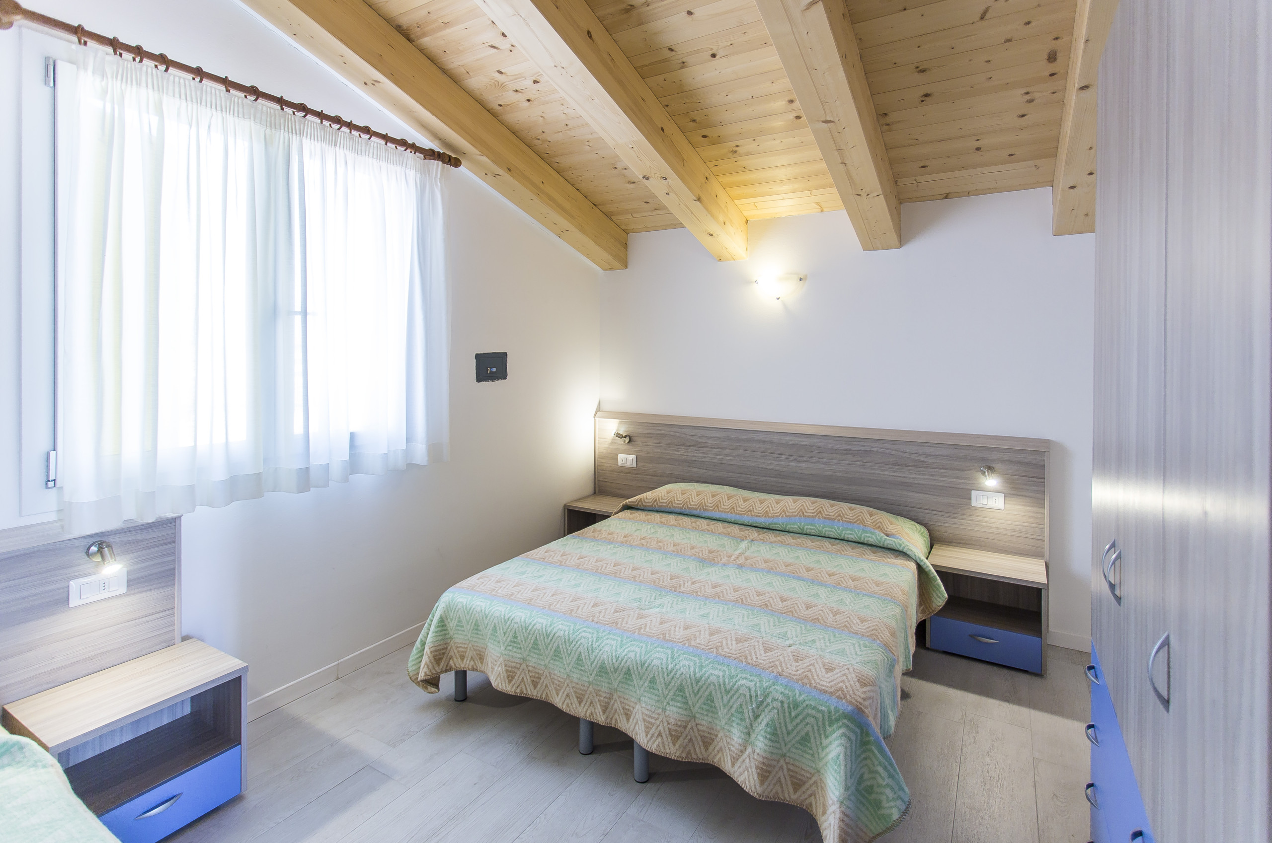 Tutti gli appartamenti si sviluppano su un unico livello e alcuni offrono la vista sulla piscina e altri con vista lateralmente. Il soggiorno dispone di angolo cottura attrezzato, tavolo, sedie e divano letto matrimoniale alla francese, con accesso al balcone o al giardino, ideale per pranzi e cene all’aperto. La camera principale è arredata con letto matrimoniale e letto singolo, mentre la seconda camera offre due letti singoli. Il bagno è spazioso e dotato di box doccia.