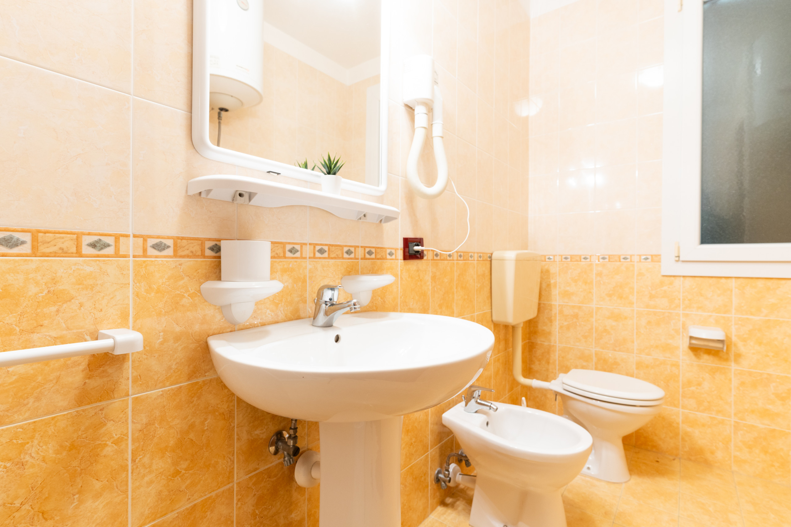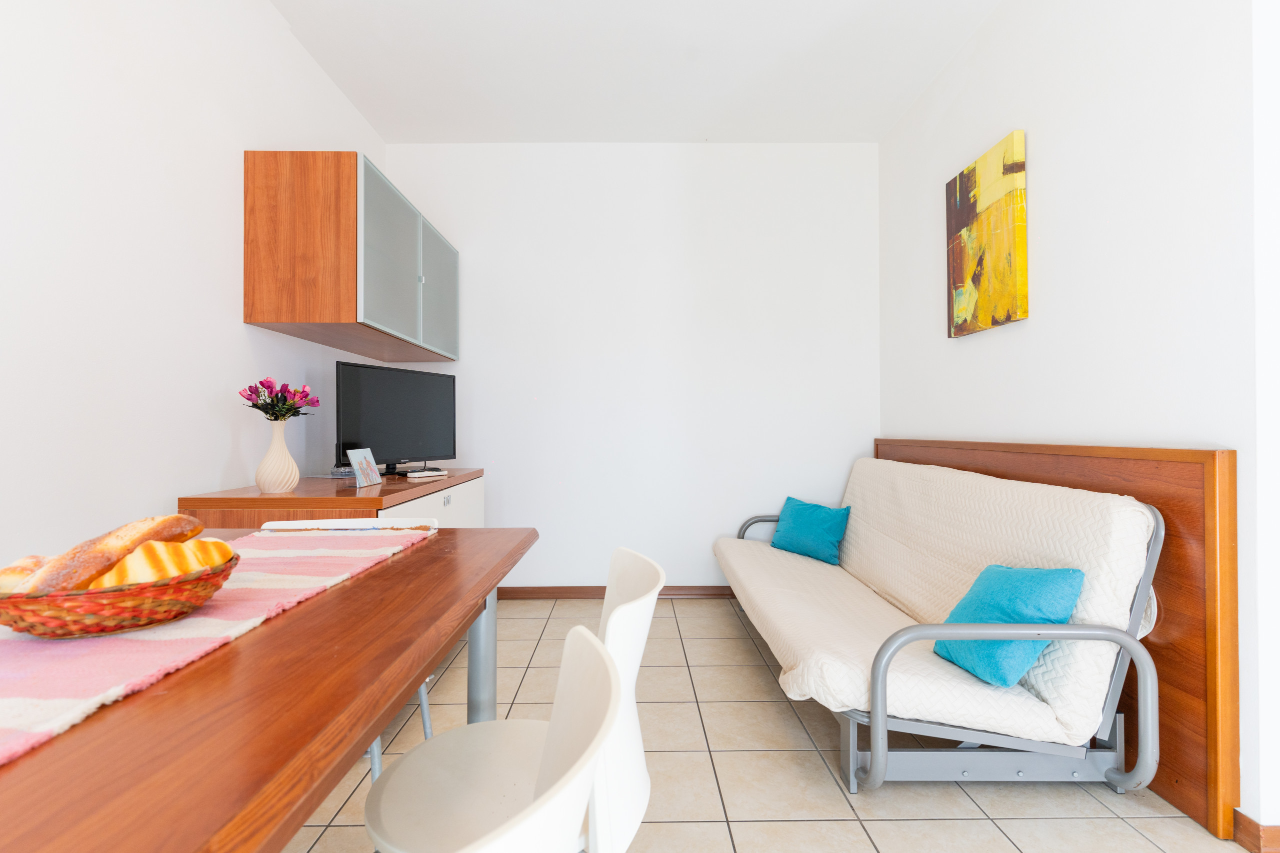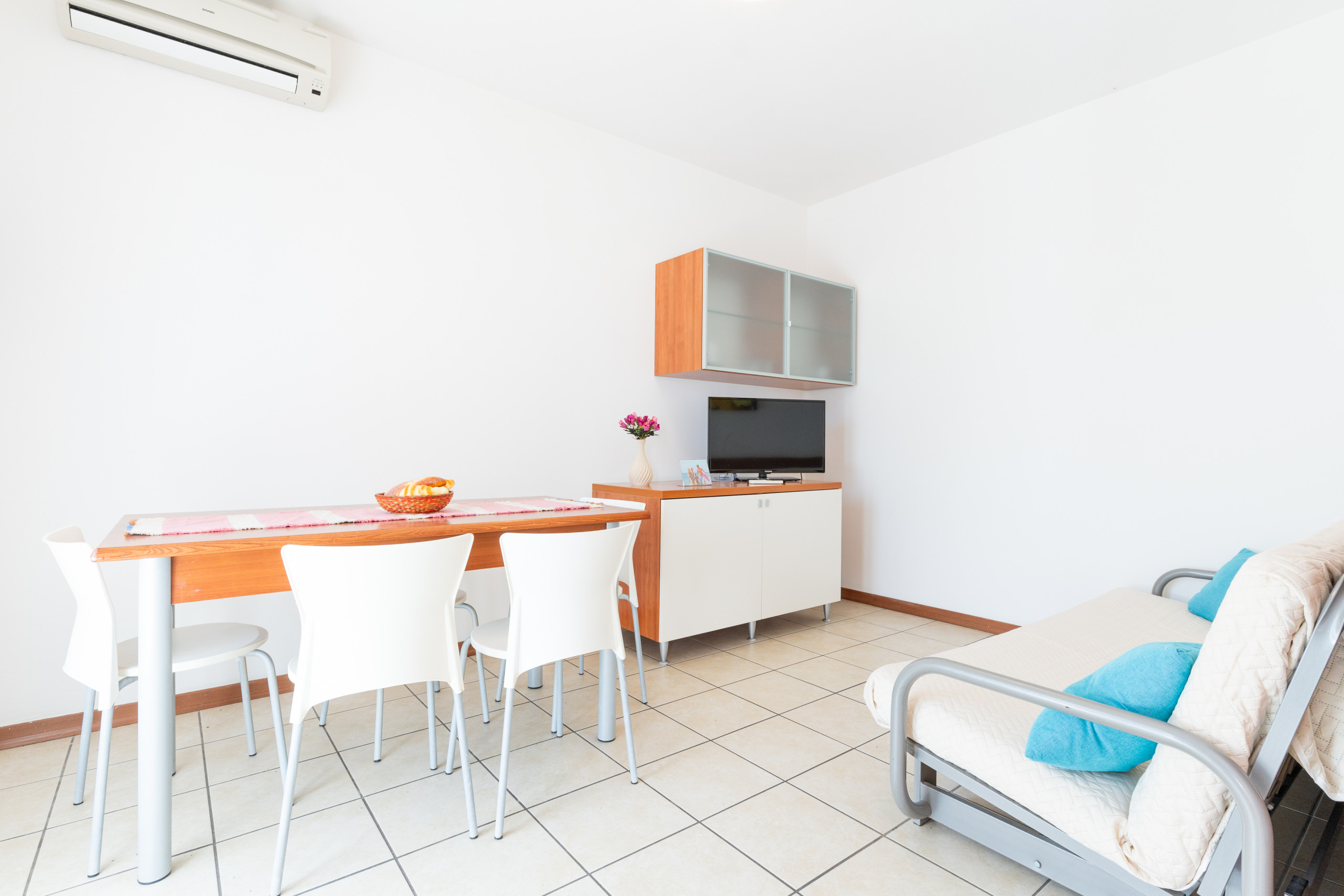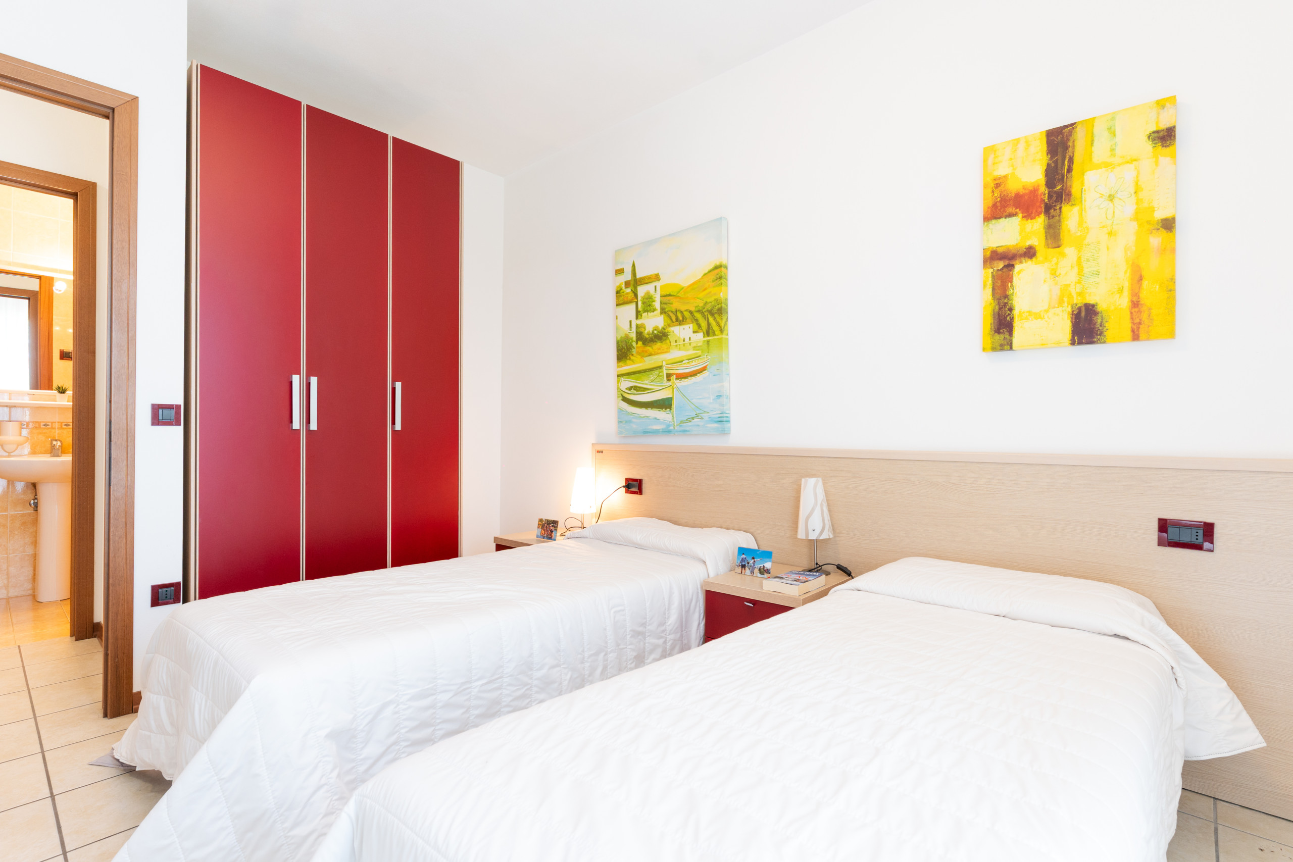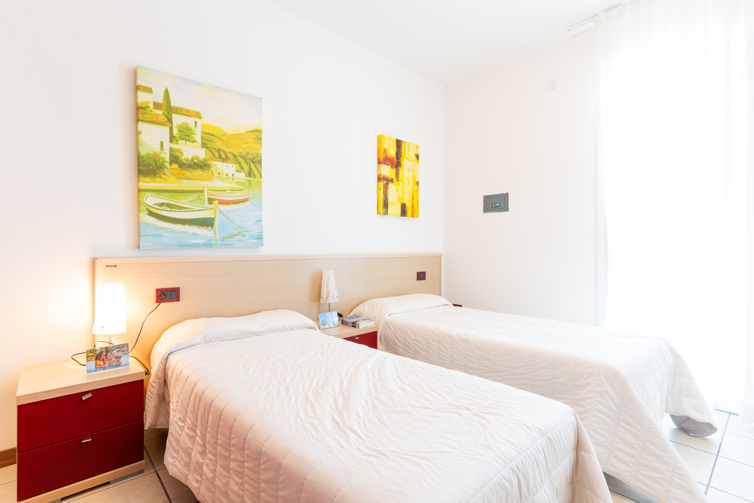 All’interno, gli appartamenti trilocali di circa 50 mq sono composti da una camera matrimoniale, una cameretta doppia e un soggiorno con angolo cottura attrezzato e divano letto doppio. Il bagno è moderno e dotato di box doccia.