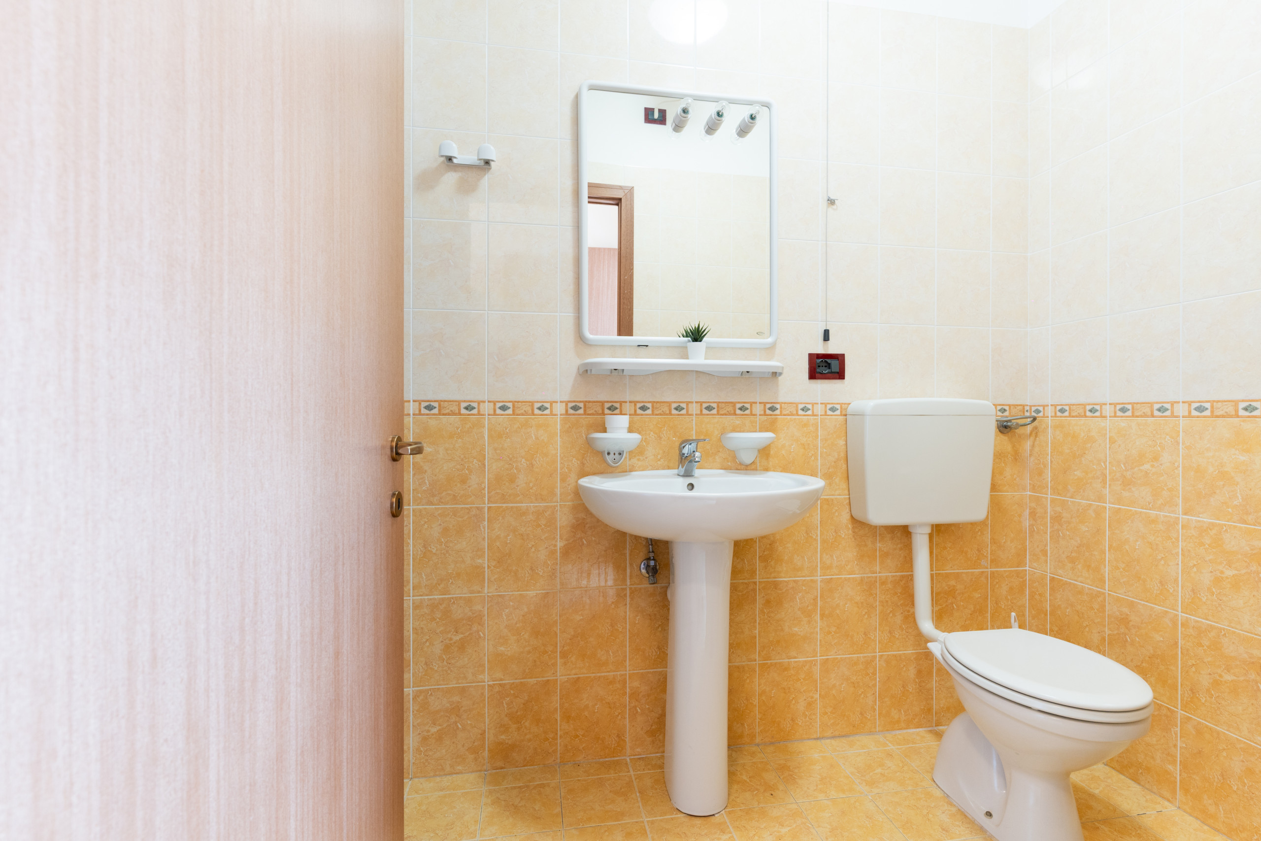 - Primo piano, accessibile con scala interna: due camere da letto (alcune con balcone) una arredata con un letto matrimoniale, la seconda con due letti singoli, e due bagni moderni di cui solo uno con box doccia.