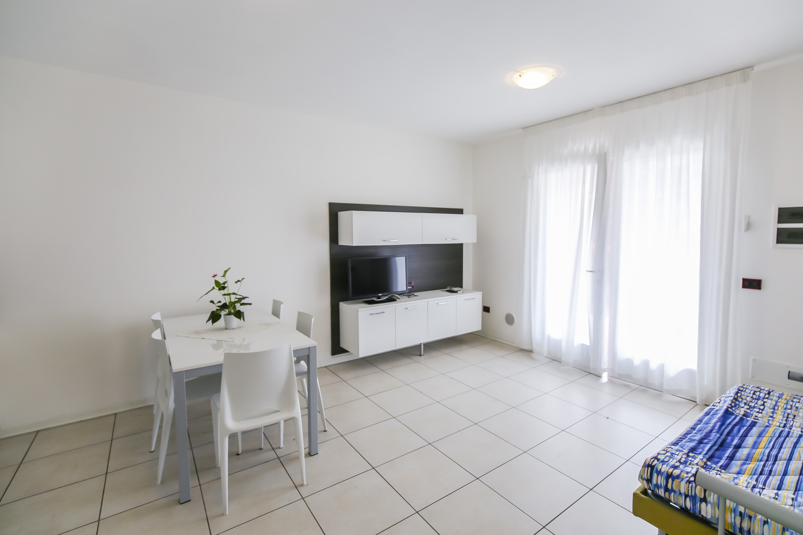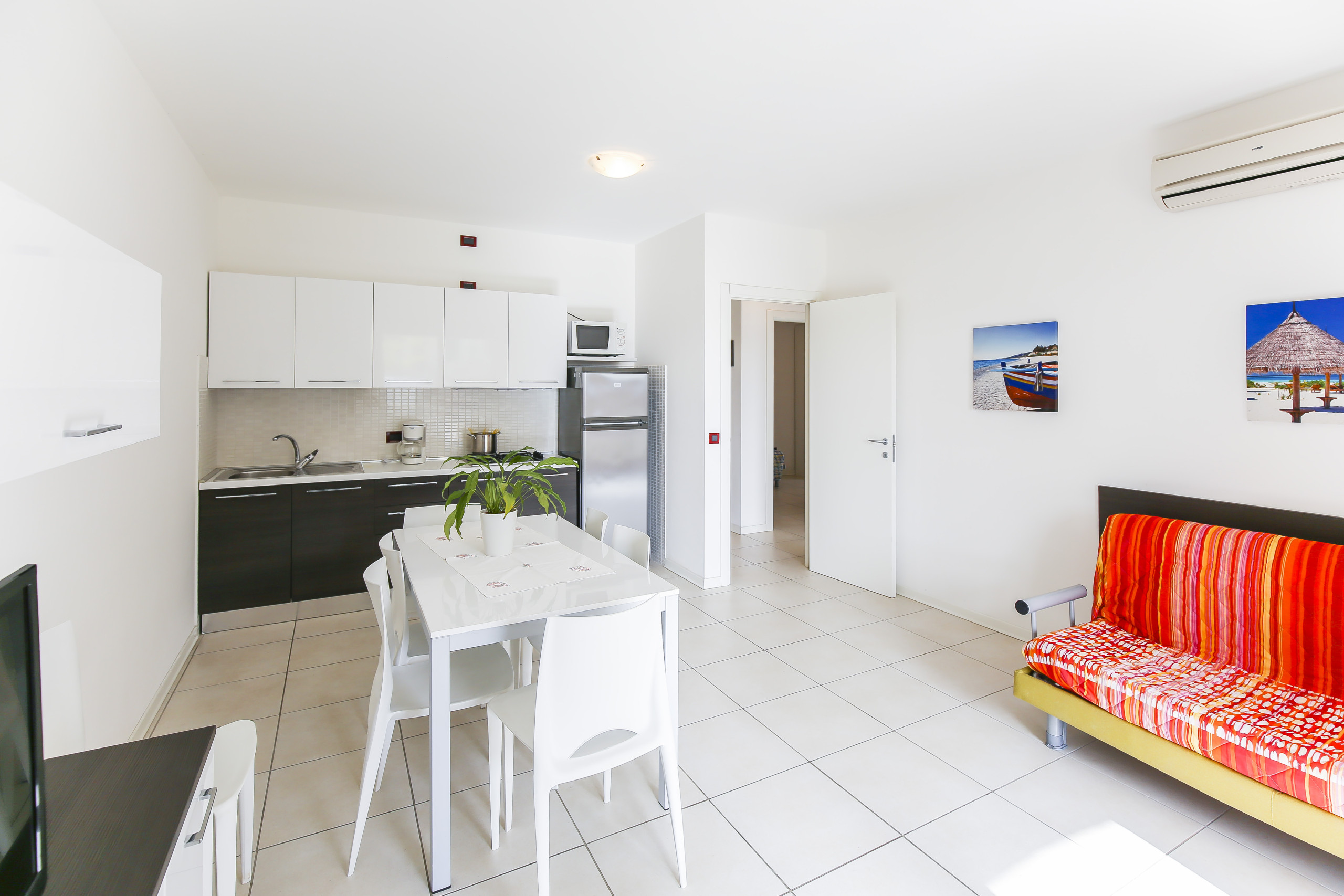 • soggiorno luminoso con angolo cottura attrezzato, tavolo da pranzo, divano letto matrimoniale alla francese e accesso a terrazzo o balcone;