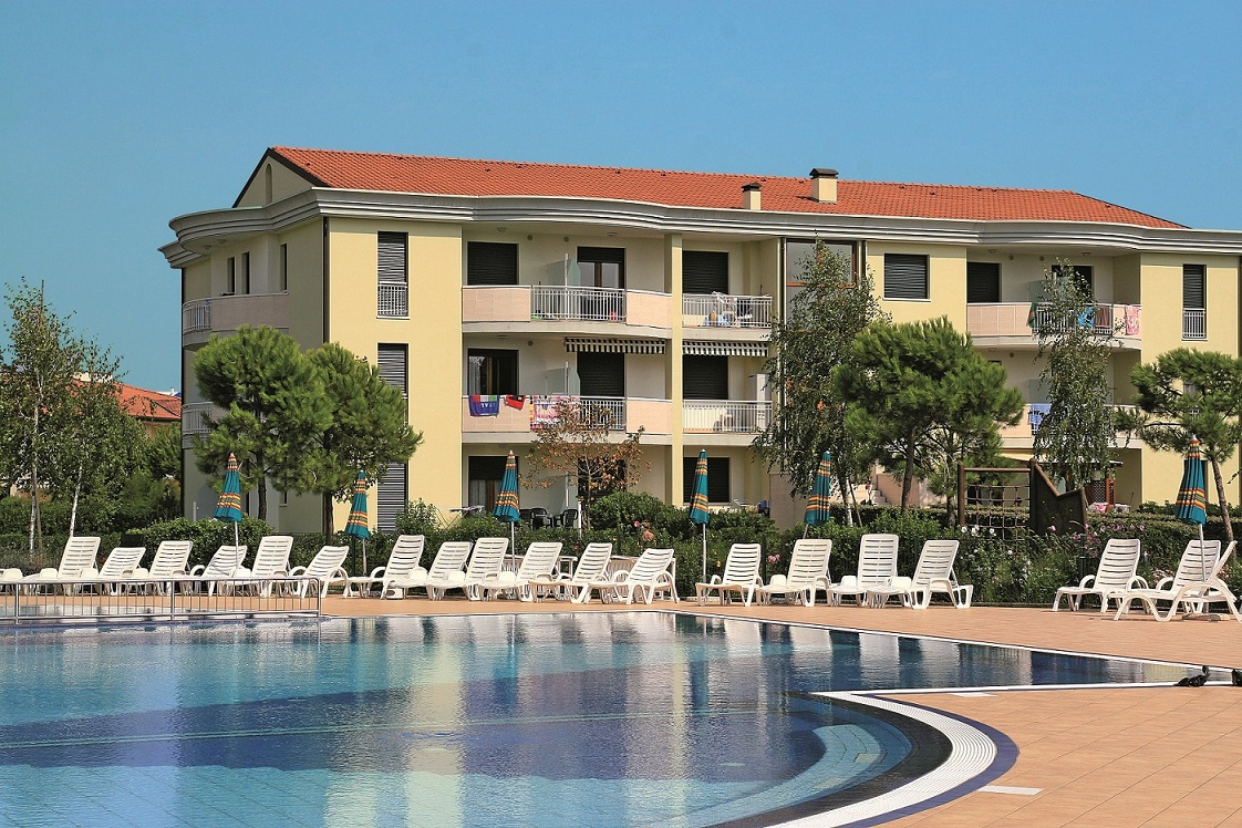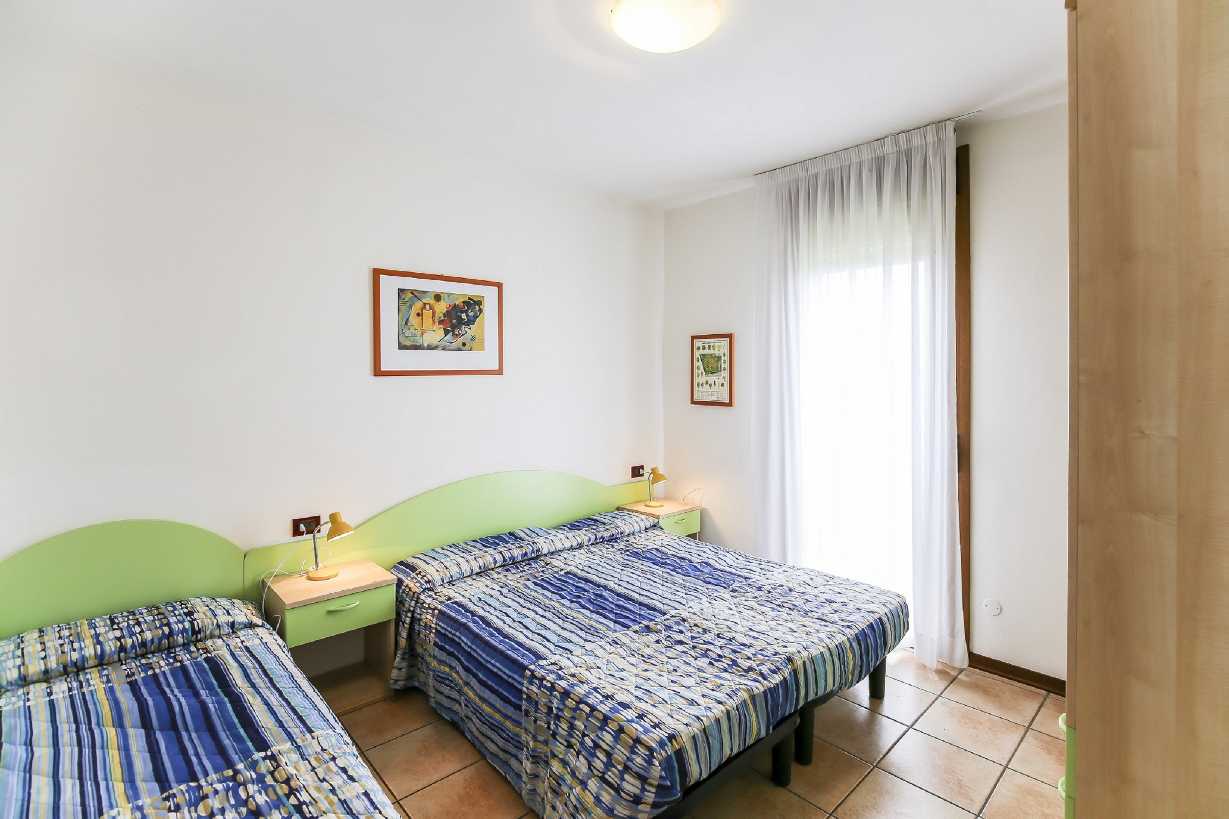 Tutti gli appartamenti si sviluppano su un unico livello e alcuni offrono la vista sulla piscina e altri con vista lateralmente. Il soggiorno dispone di angolo cottura attrezzato, tavolo, sedie e divano letto matrimoniale alla francese, con accesso al balcone o al giardino, ideale per pranzi e cene all’aperto. La camera principale è arredata con letto matrimoniale e letto singolo, mentre la seconda camera offre due letti singoli. Il bagno è spazioso e dotato di box doccia.