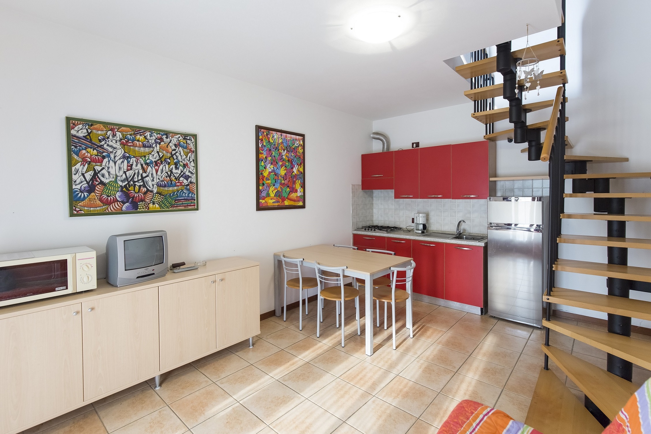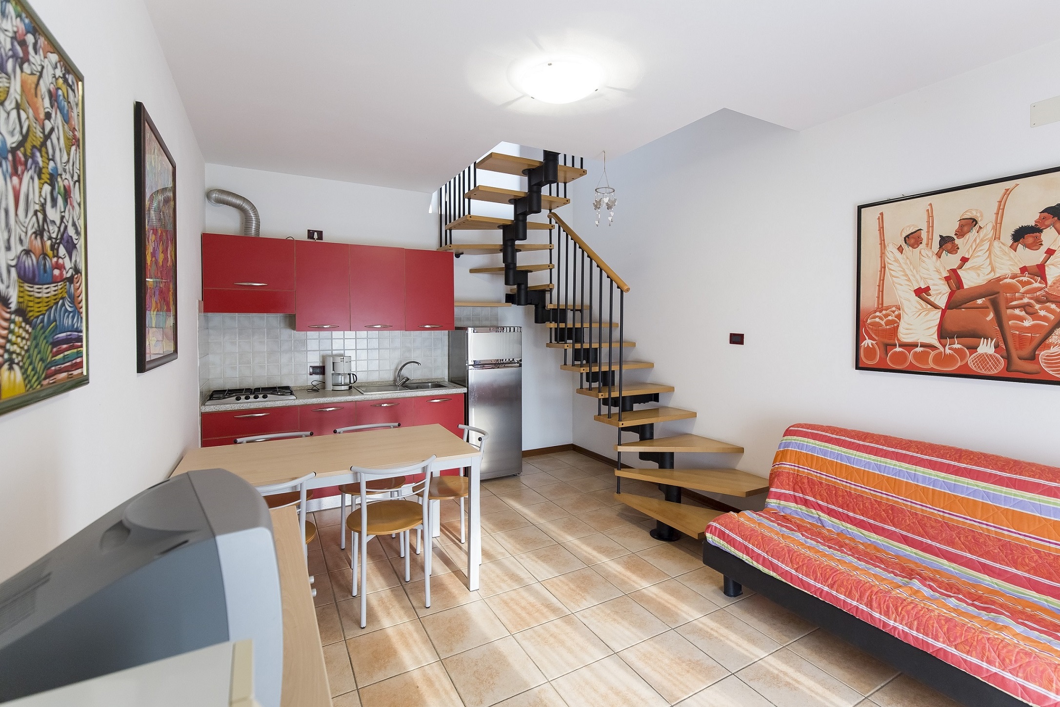 Ogni villetta (45 mq) è disposta su due piani: al piano terra troviamo un soggiorno con angolo cottura e un comodo divano letto matrimoniale alla francese;