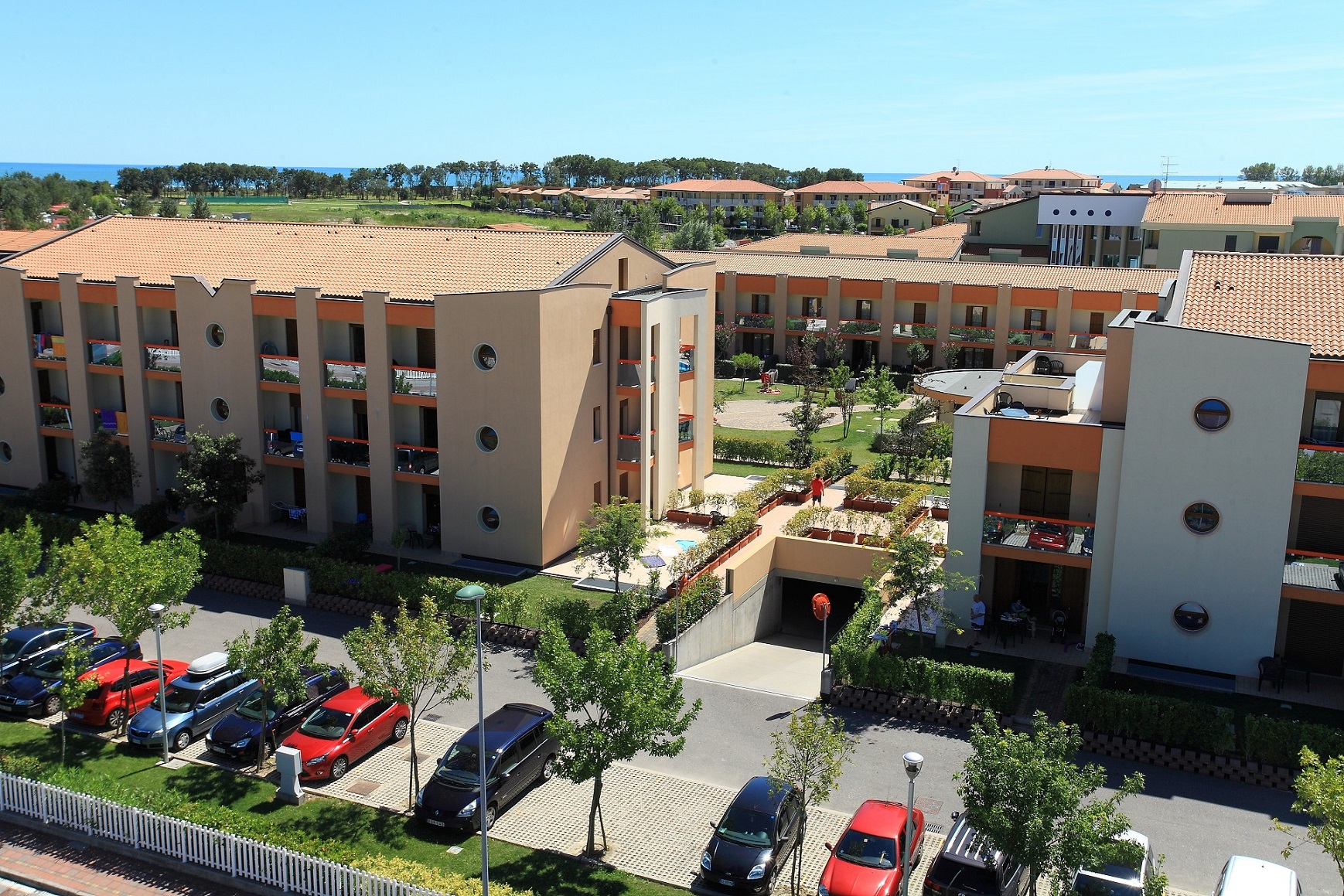 Il villaggio offre ampi giardini comuni con vialetti pedonali, piscina per adulti e piscina dedicata ai bambini, area giochi e zona barbecue. Sono presenti parcheggi scoperti e autorimessa, mentre il Wi-Fi è disponibile gratuitamente nelle aree comuni.