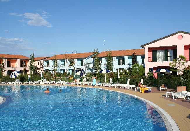 Villetta bilocale su 2 piani. Giardino , soggiorno con angolo cottura e divano letto matrimoniale, al 1 piano: bagno, camera matrimoniale con terzo letto, cassaforte, clima, TVSat, Situato a circa 600m dalla spiaggia di Caorle Lido Altanea il villaggio "I Pioppi" si compone di 52 villette a schiera disposte su due piani sviluppate attorno alla grande piscina centrale e a quella per bambini con ampio solarium attrezzato. Ristoranti, bar e nogozi si trovano a circa 150m nella galleria"la quercia", il supermercato dista circa 500m. Disponibile servizio spiaggia a pagamento (informazioni presso l'ufficio Lampo di Caorle Lido Altanea).