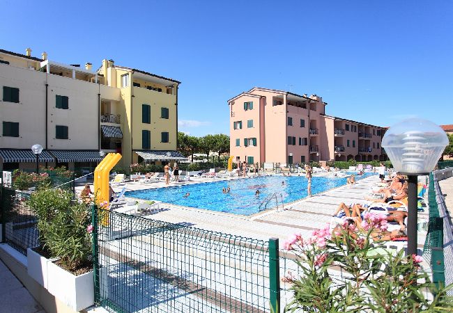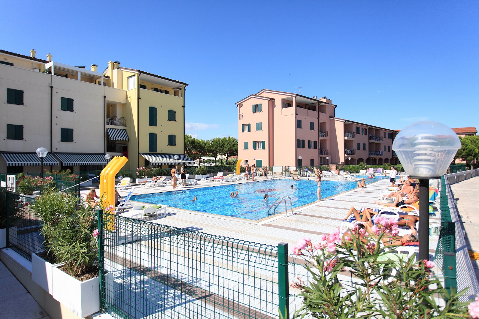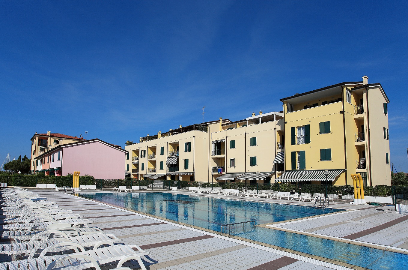 Bilocale con terrazzo, composto da camera matrimoniale, soggiorno con angolo cottura e divano letto doppio, bagno. ALBATROS EST è un residence con piscina ed ascensore (solo alla scala E) situato in zona "Darsena dell'Orologio", vicino al centro storico e a 800 metri dalla spiaggia. E' composto da appartamenti di varie metrature, alcuni con giardino, altri con o senza terrazzo. Ciascuno dispone di un posto auto privato.
