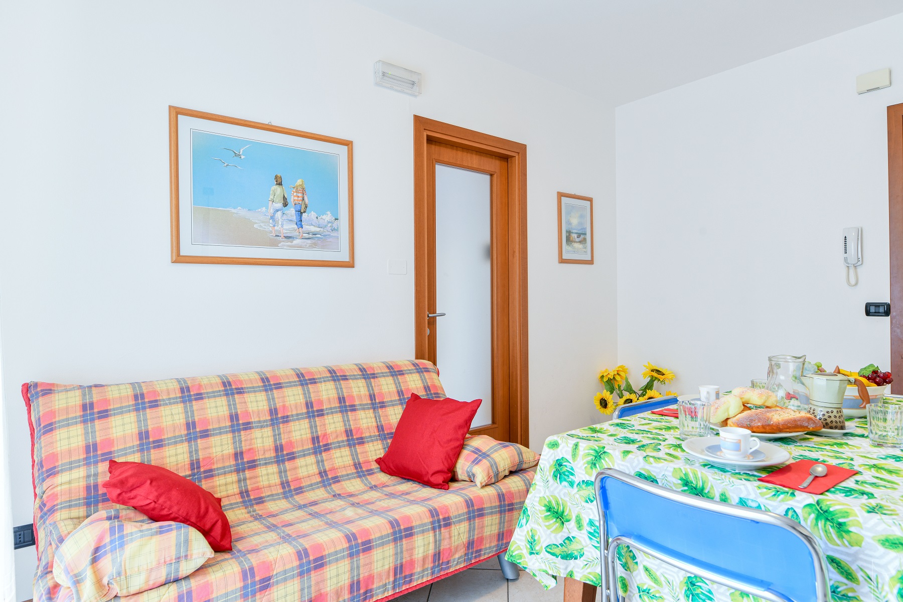 Bilocale con terrazzo, composto da camera matrimoniale, soggiorno con divano letto doppio ed angolo cottura, bagno. CASA LINA è una palazzina completamente ristrutturata che si affaccia sulla zona pedonale serale di Viale Santa Margherita. Si compone di appartamenti bilocali con terrazzo, dotati di aria condizionata, tv, posto auto. Vicino al mare (circa 100 metri) ed ai negozi di prima necessità.