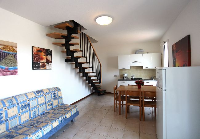 Villetta a schiera disposta su due piani con balcone e piccolo terrazzo. Al piano terra soggiorno con divano letto doppio ed angolo cottura. Al primo piano camera matrimoniale e bagno. Il VILLAGGIO LUNA 2 è un villaggio situato nella Spiaggia di Ponente a circa 250 metri dal mare, composto da villette a schiera disposte su due piani, dotate di clima, cassaforte e posto auto numerato, alcune con giardino privato, altre con terrazza. Piscina per adulti e bambini con solarium annesso. Nel villaggio si trova anche un piccolo condominio dotato di ascensore (con ingresso largo 75 cm), con appartamenti di diverse tipologie tutti con terrazza.