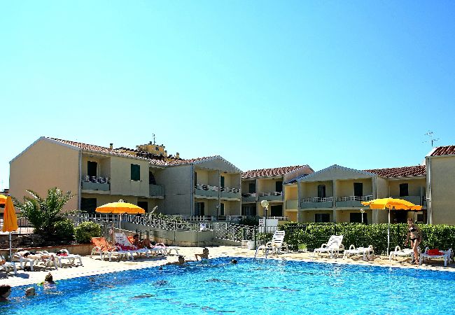 Monolocale con terrazzo al piano superiore del condominio, composto da soggiorno con letto matrimoniale, poltrona letto singola ed armadio letto singolo, angolo cottura, bagno. Il VILLAGGIO LUNA 2 è un villaggio situato nella Spiaggia di Ponente a circa 250 metri dal mare, composto da villette a schiera disposte su due piani, dotate di clima, cassaforte e posto auto numerato, alcune con giardino privato, altre con terrazza. Piscina per adulti e bambini con solarium annesso. Nel villaggio si trova anche un piccolo condominio dotato di ascensore (con ingresso largo 75 cm), con appartamenti di diverse tipologie tutti con terrazza.