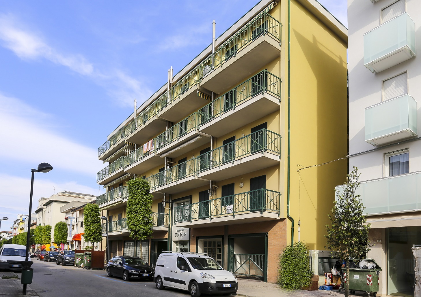 Trilocale con terrazzo, composto da una camera matrimoniale, una camera con letto a castello, soggiorno con angolo cottura e divano letto doppio, bagno. Il Residence Union è un residence fronte mare di recente costruzione situato a Caorle nella spiaggia di Ponente, a pochi passi dal centro storico, in zona tranquilla ma vicina ai negozi, bar, ristoranti e ad altri servizi come banche, farmacie, supermercati etc. E' composto da appartamenti di varie dimensioni, alcuni con posto auto. Nelle immediate vicinanze zona pedonale tra i negozi per splendide passeggiate serali per gli amanti dello shopping. Comodo accesso diretto alla spiaggia dal residence. Con ascensore. Appartamenti ben arredati e forniti di climatizzatore, lavatrice, televisione, angolo cucina dotato di stoviglie, bagno con box doccia.